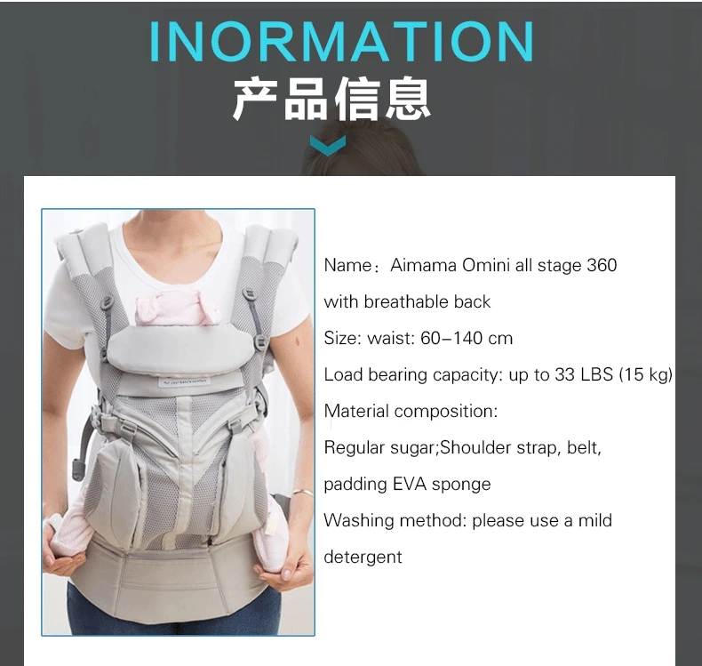 Aimama 0-36 месяцев 360 эргономичный холодный воздух хлопок Регулируемая переноска младенца слинг обернуть ремень рюкзаки