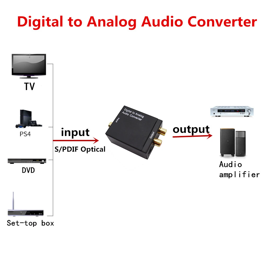 Цифро-аналоговый аудиоконвертер оптоволоконный коаксиальный сигнал в аналоговый ЦАП Spdif стерео декодер 2 * RCA