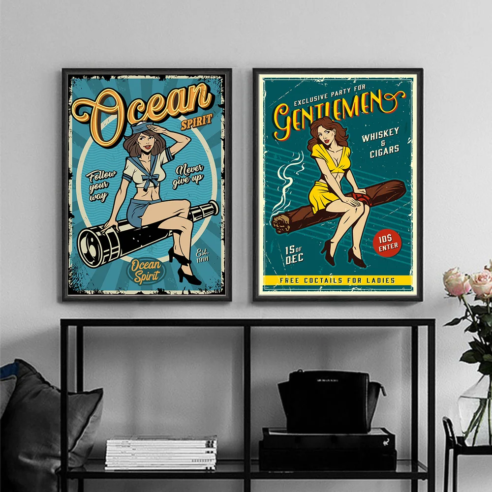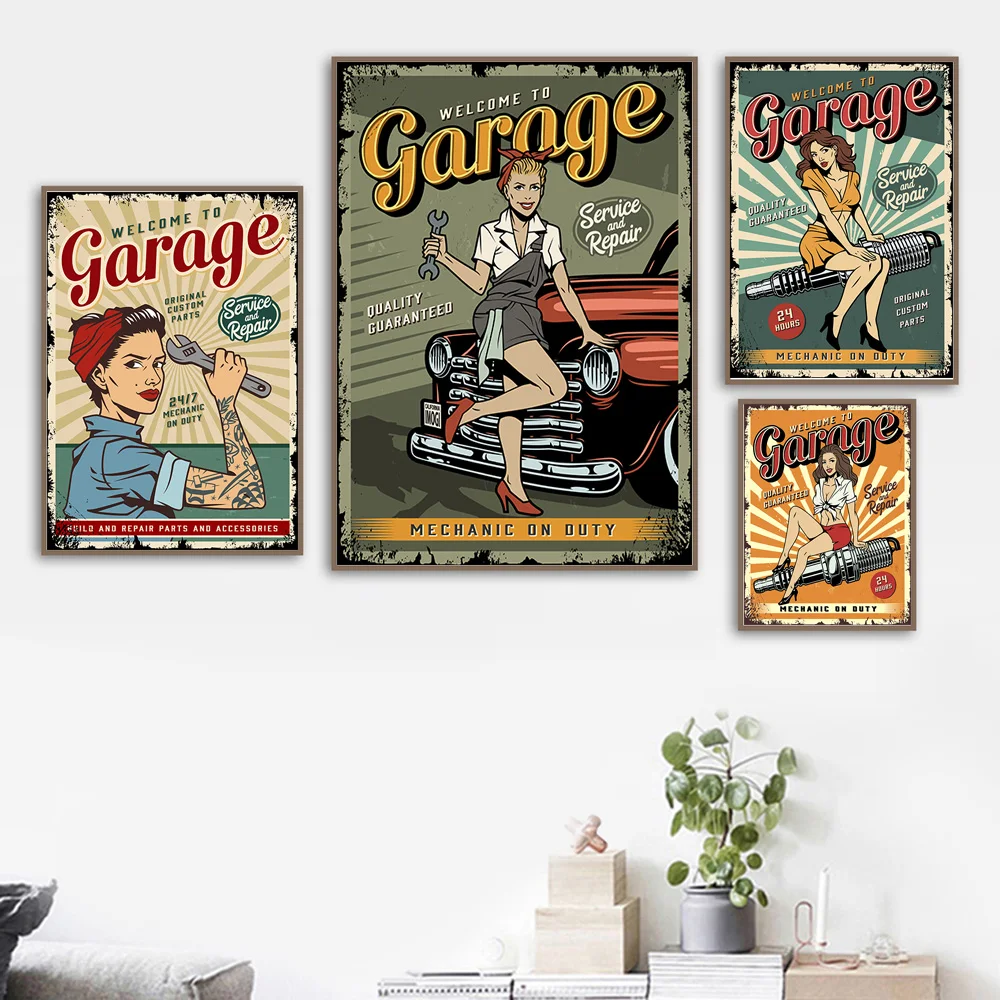 Ретро военный постер для гаража с булавкой, плакаты для девочек и принты, настенная живопись на холсте, Настенная картина для гаража, Декор