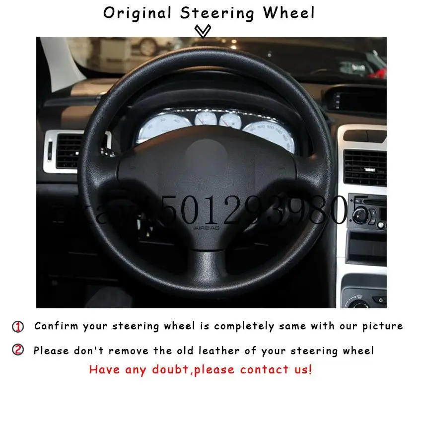 Рука сшитый черный кожаный чехол рулевого колеса автомобиля для Peu...