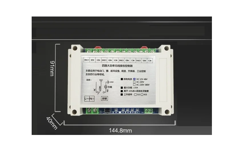 Пульт дистанционного управления с реле 30A, вы можете загрузить мощные приборы, получая способ обучения типа одночипного декодирования, вы можете узнать более одного пульта дистанционного управления, И каждый пульт дистанционного управления, все ключи можно узнать, каждый пульт дистанционного управления может управлять несколькими переключателями, Также может быть ряд дистанционного управления для управления переключателем, простое и Гибкое сочетание любой комбинации дистанционного управления каждой кнопкой, чтобы узнать различные способы работы, чтобы избежать прохождения крышки, чтобы переключить выход неприятностей, прост в использовании, подходит для нескольких областей многократного использования, Выходной сигнал переключателя, прост в установке, удобен.