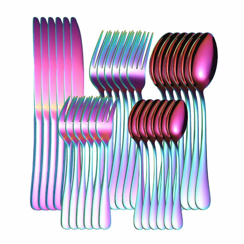 Характеристики:Стиль: ЗападныйМатериал: металлТехника: материяТип узора: однотонныйОсобенность: экологически чистыйКоличество пользователей: 6Сертификация: CE / EUПосуда: вилка ложка набор ножейТип металла: нержавеющая стальНабор столовых приборов: столовые приборы из нержавеющей стали