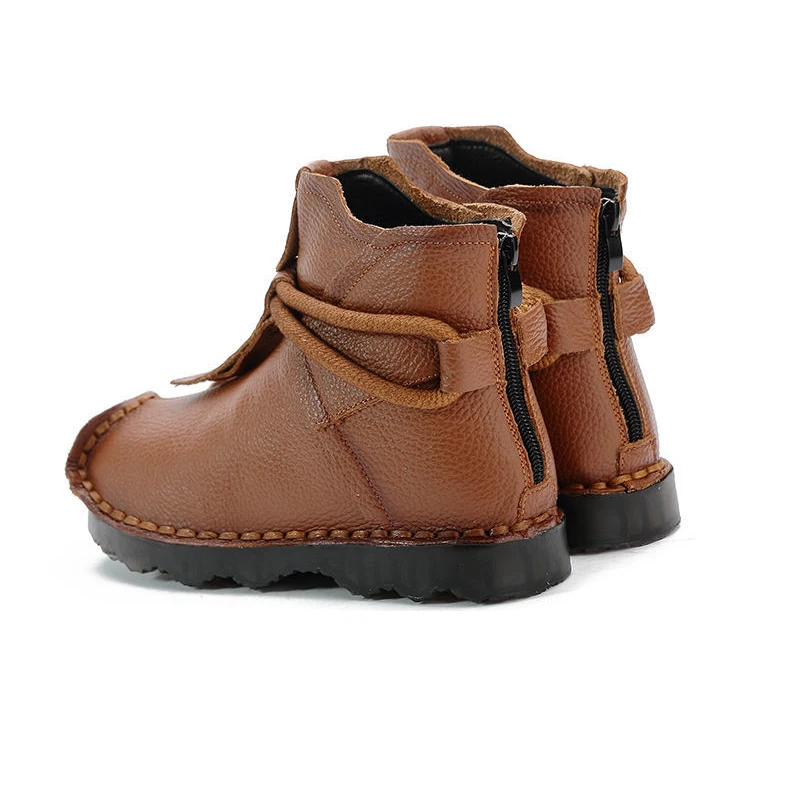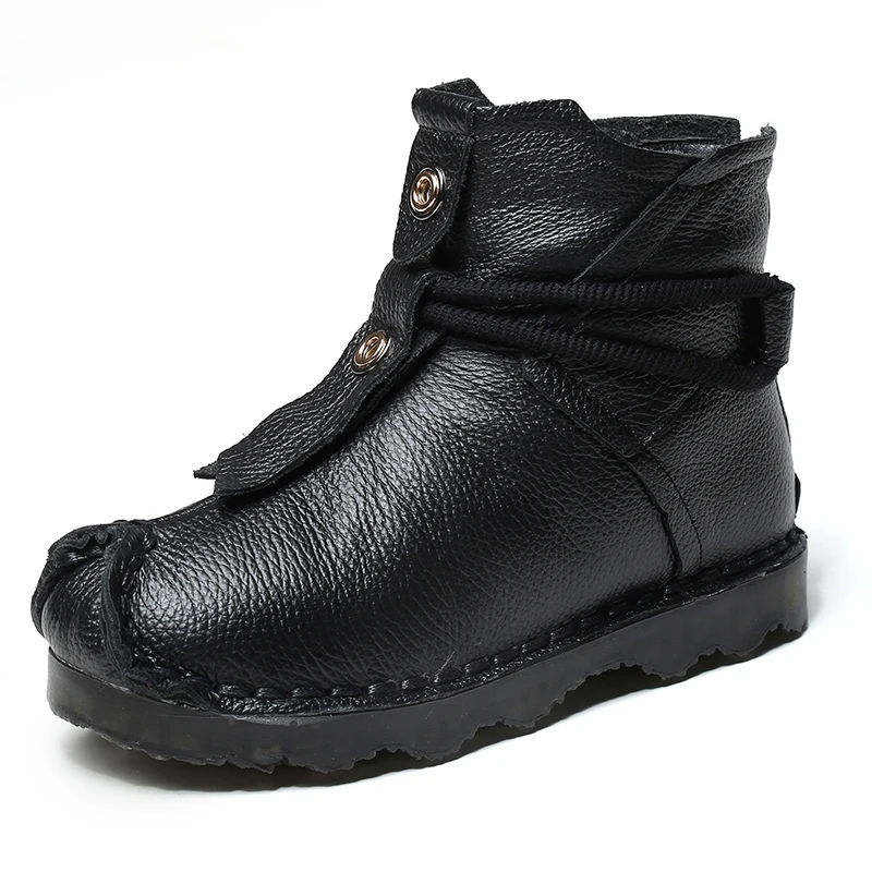 OUKAHUI осенние винтажные ботильоны ручной работы из натуральной кожи на плоской подошве для женщин на низком каблуке Зимние теплые плюшевые кожаные ботинки в западном стиле для женщин