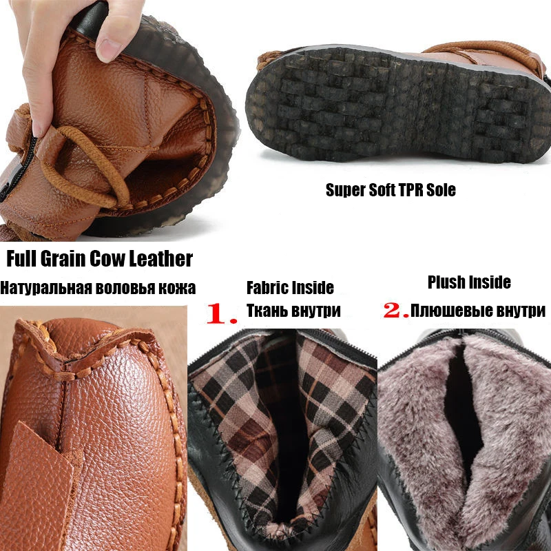 OUKAHUI 2020 натуральная кожа зимние сапоги женские теплые плюшевые...