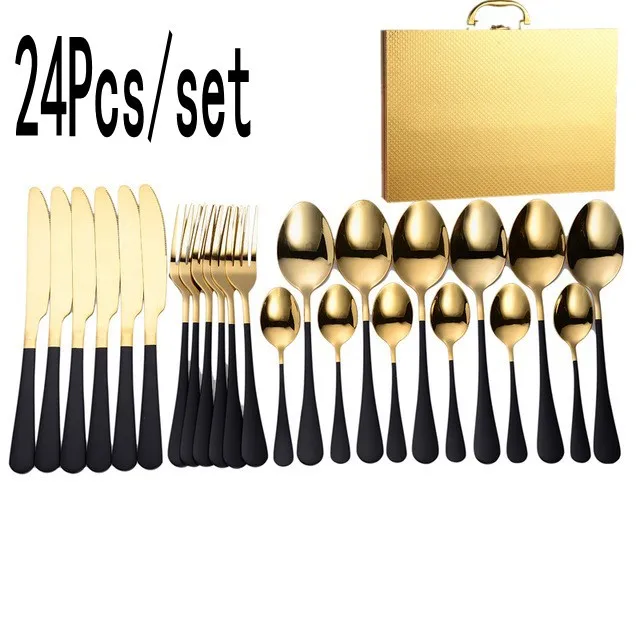Набор столовых приборов из нержавеющей стали, набор из 24 предметов, позолоченные и окрашенные черные столовые приборы из нержавеющей стали, Подарочная коробка, набор посуды