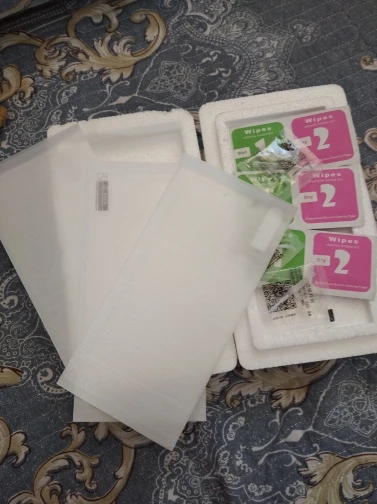 1. Поглотителя пыли (липкая бумажка) в комплекте не было 2. Стекло не на всю площадь экрана 3. Края в некоторых местах плохо прилегают даже с использованием жидкости из комплекта