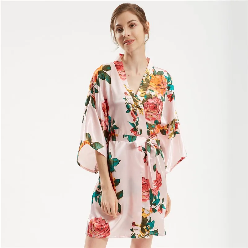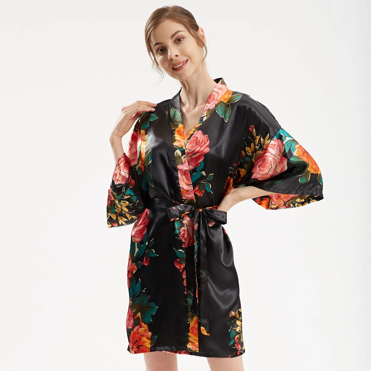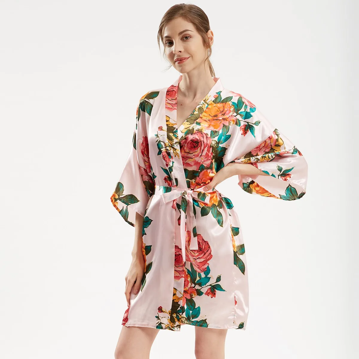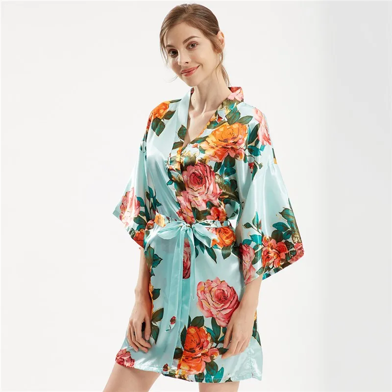 2021 Новый невесты или подружки невесты; Свадебное платье для детей сатиновая Женская одежда для сна с принтом ночная рубашка с цветочным рисунком больших размеров кимоно платье шелковистые интимное белье