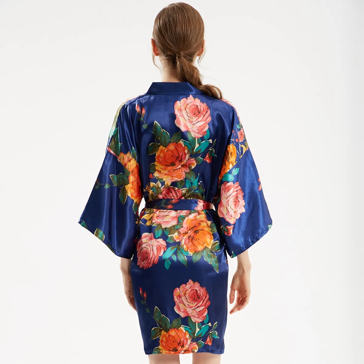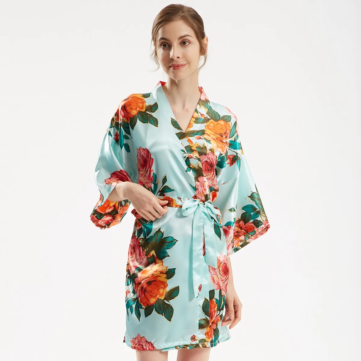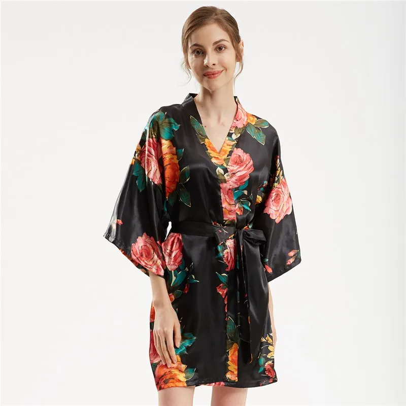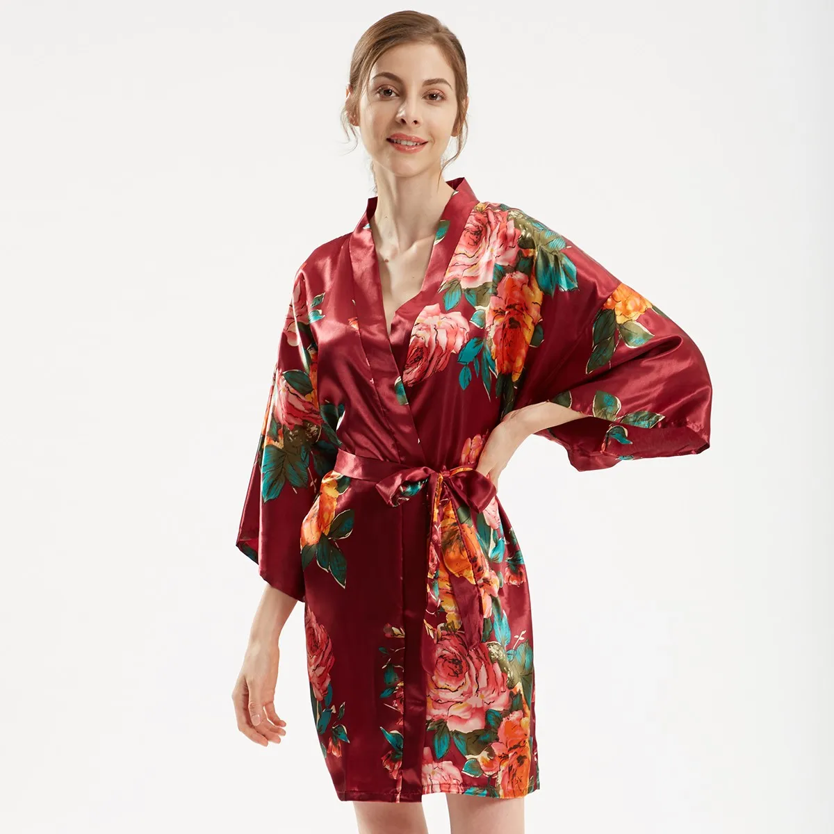 2021 Новый невесты или подружки невесты; Свадебное платье для детей сатиновая Женская одежда для сна с принтом ночная рубашка с цветочным рисунком больших размеров кимоно платье шелковистые интимное белье