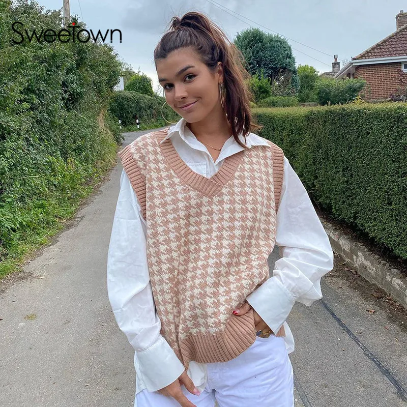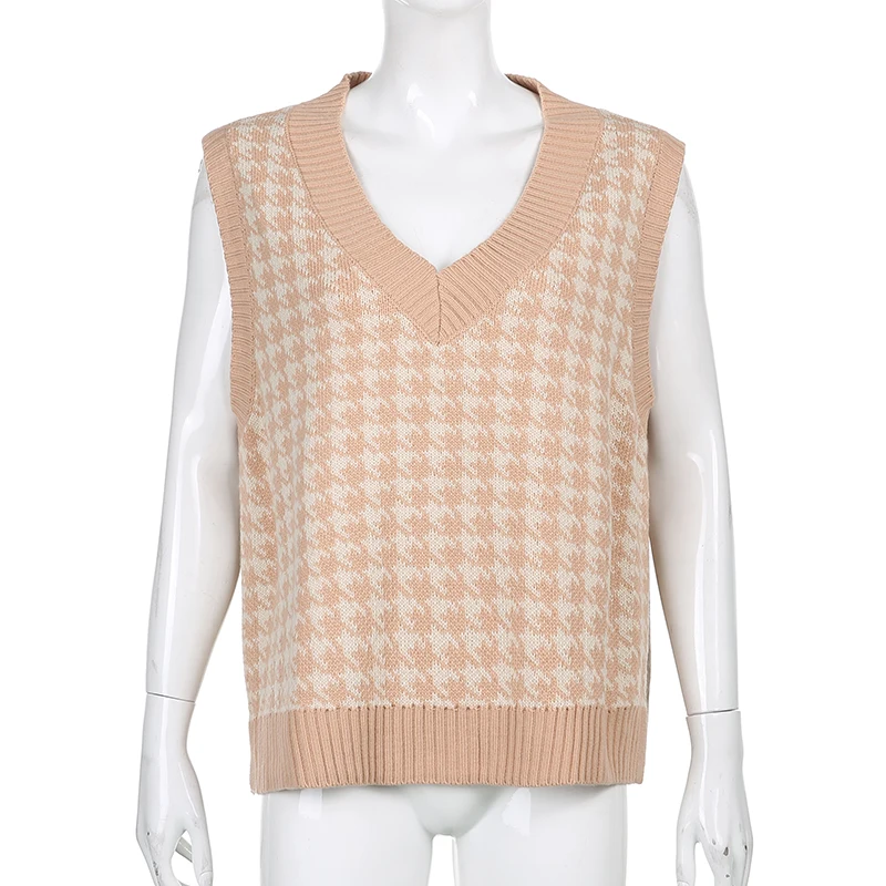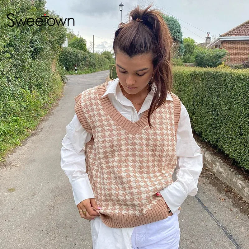Вязаный свитер-безрукавка Женский, в стиле преппи, с V-образным вырезом
