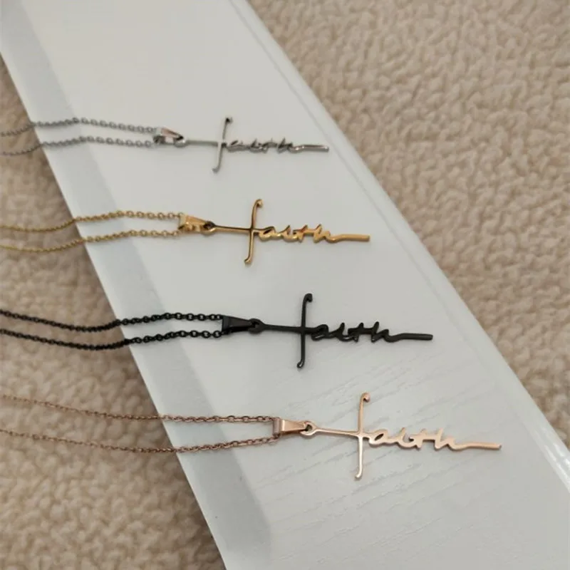1 шт. Амулет Крест Вера ожерелье буква кулон из нержавеющей стали трендовый минималистичный мужской и женский модный ювелирный подарок 4 цвета
