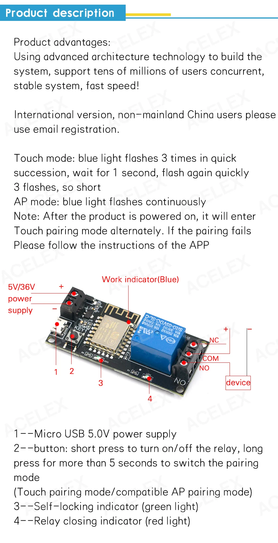 Релейный модуль дистанционного управления для мобильного телефона Sinilink APP WIFI, 6 В постоянного тока 36 В