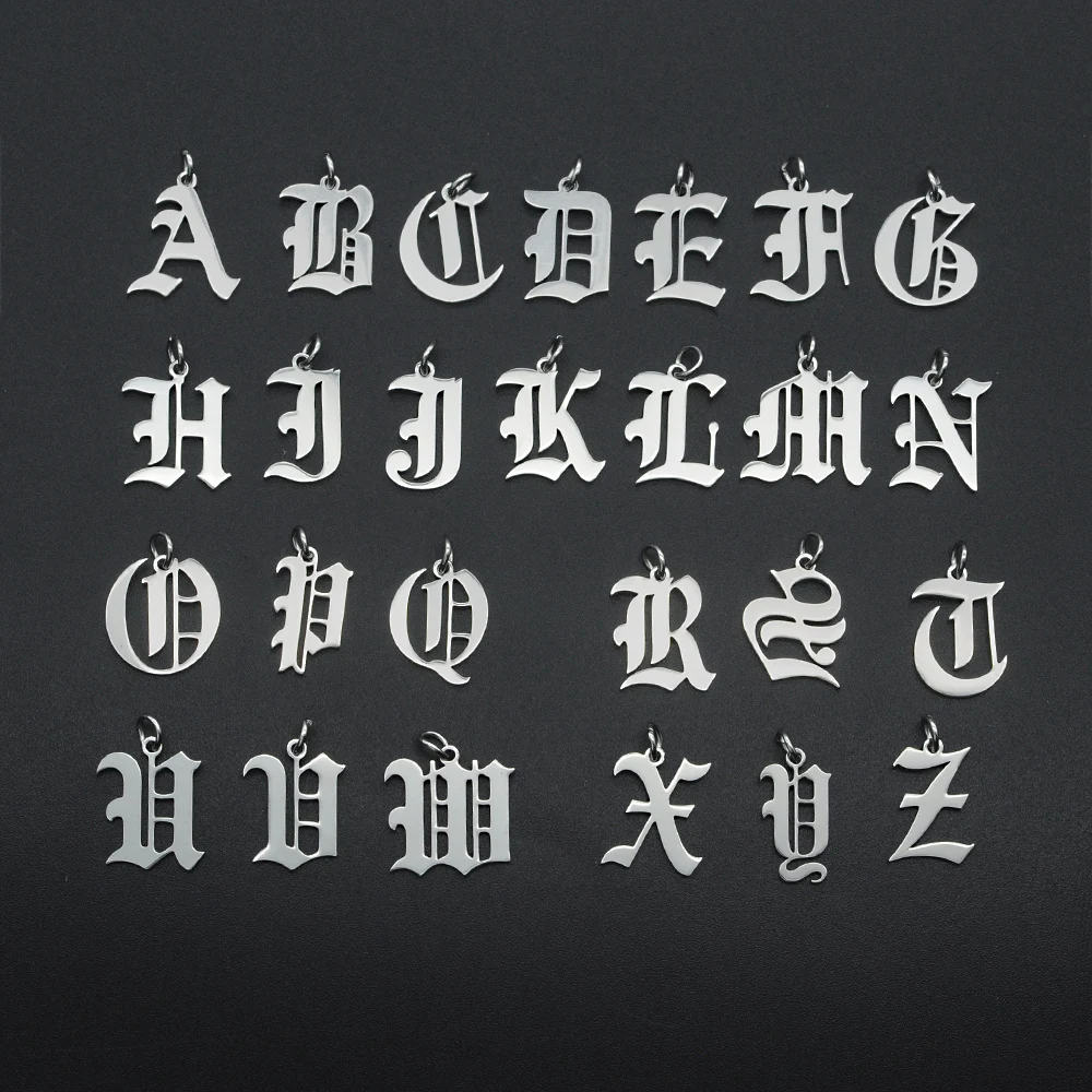 5 шт.лот старинном английском буква Шарм Оптовая продажа 100% из нержавеющей стали A-Z Alpabet ювелирные изделия Кулон DIY ювелирные подвески