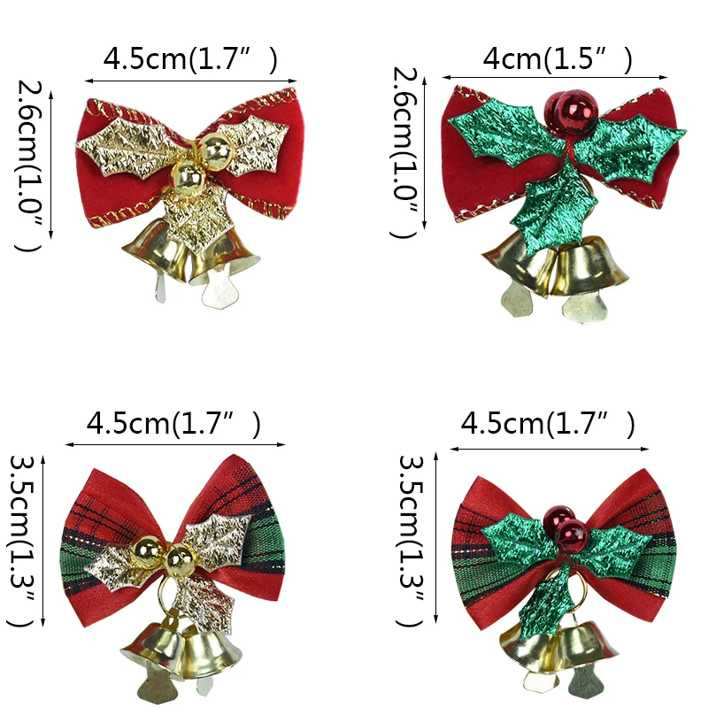 Рождественский галстук-бабочка с колокольчиками, 4 стиля, 6 шт.