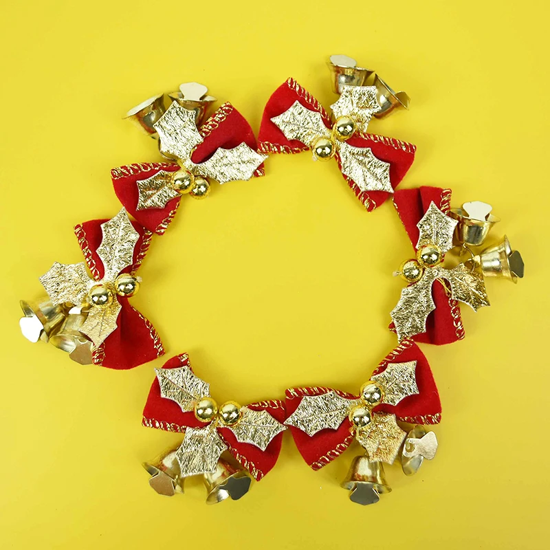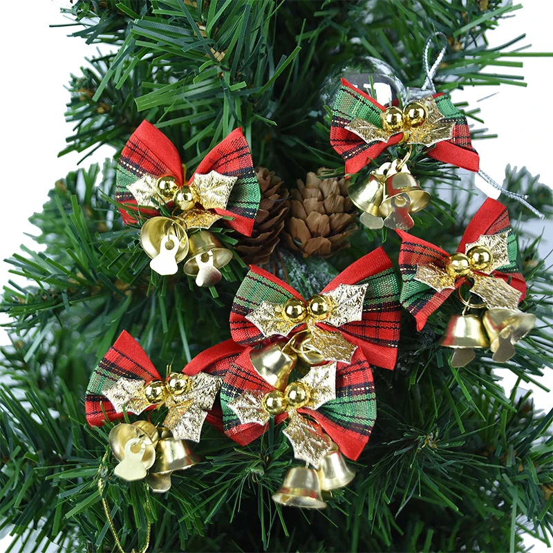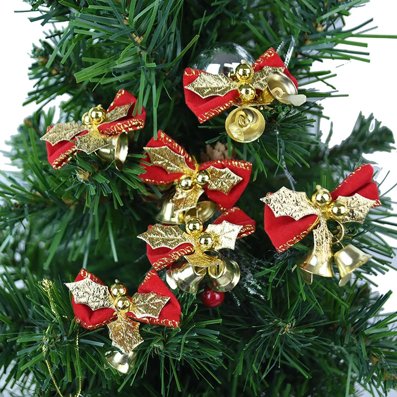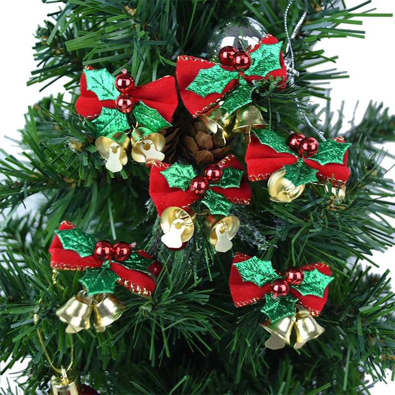 Украшения для рождественской елки, с колокольчиками, красные, зеленые, золотые, 6 шт.