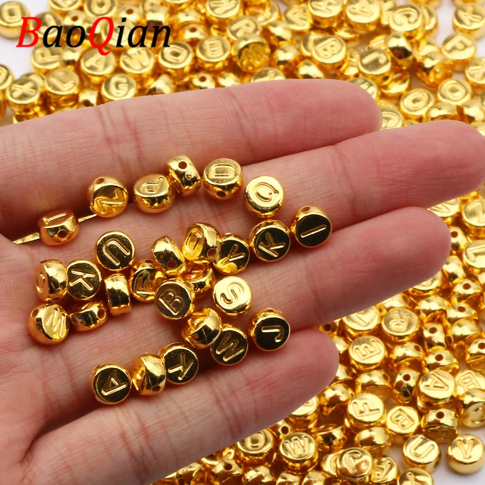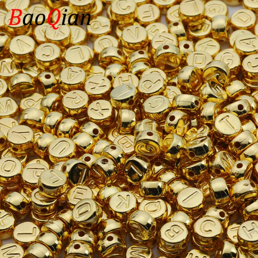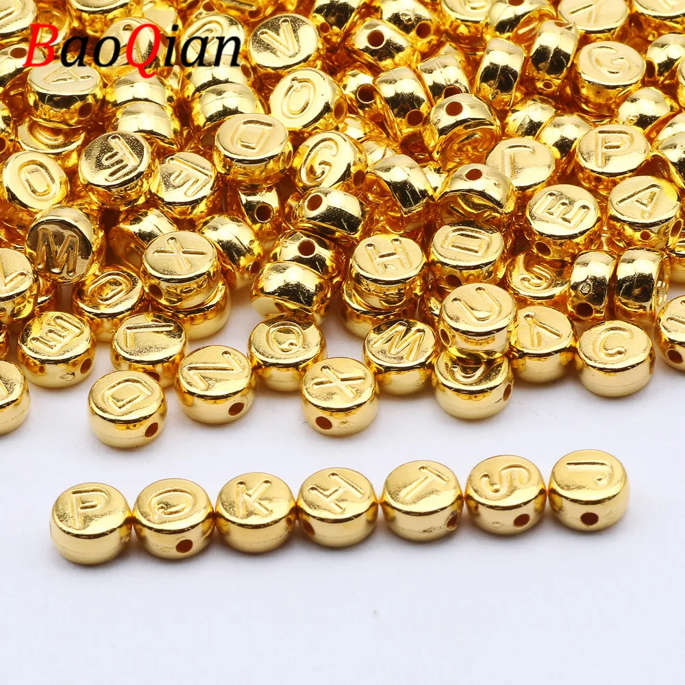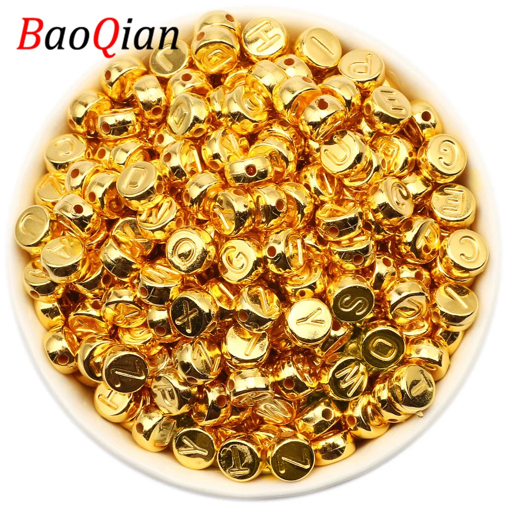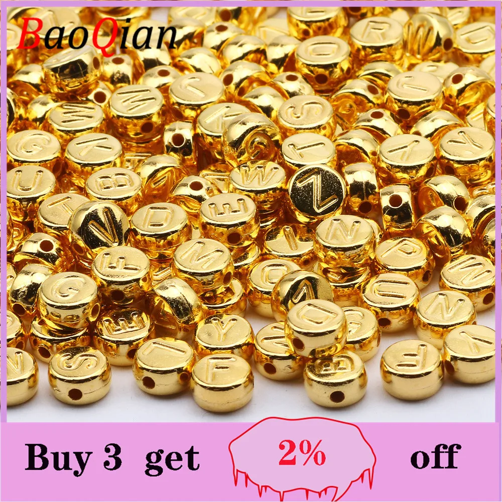 Плоские акриловые бусины с буквами золотого алфавита для изготовления ювелирных изделий сделай сам, изящные браслеты, ожерелья, аксессуары