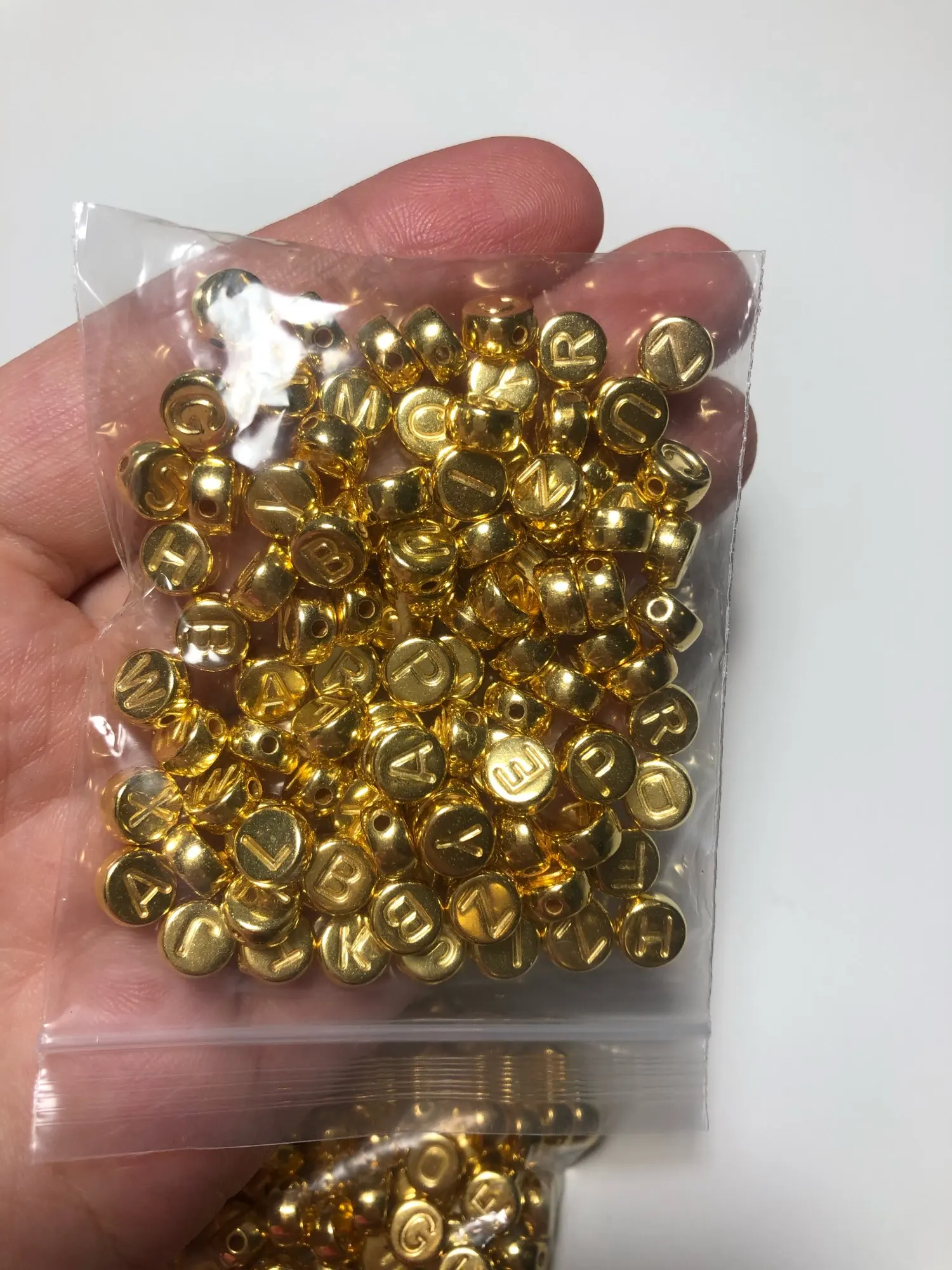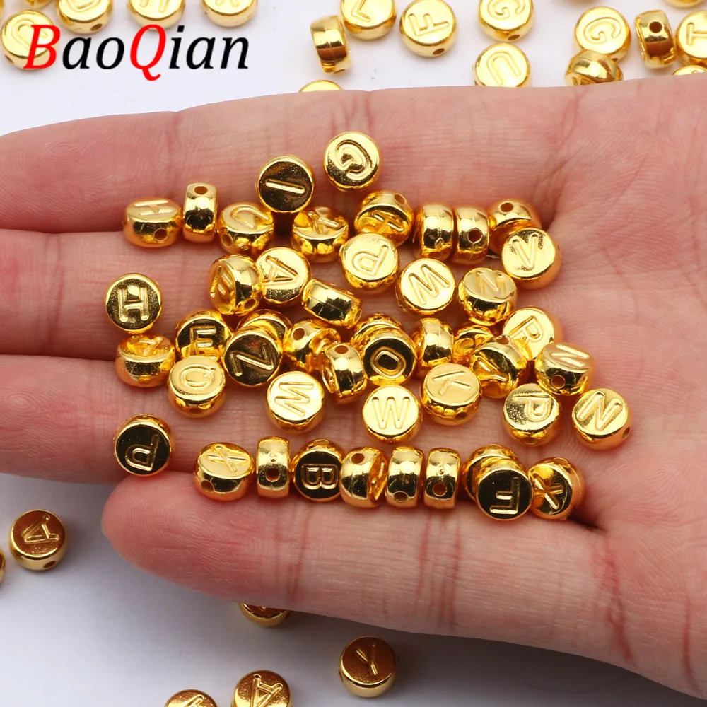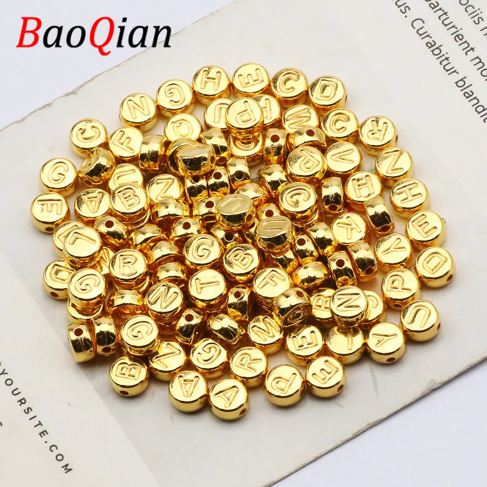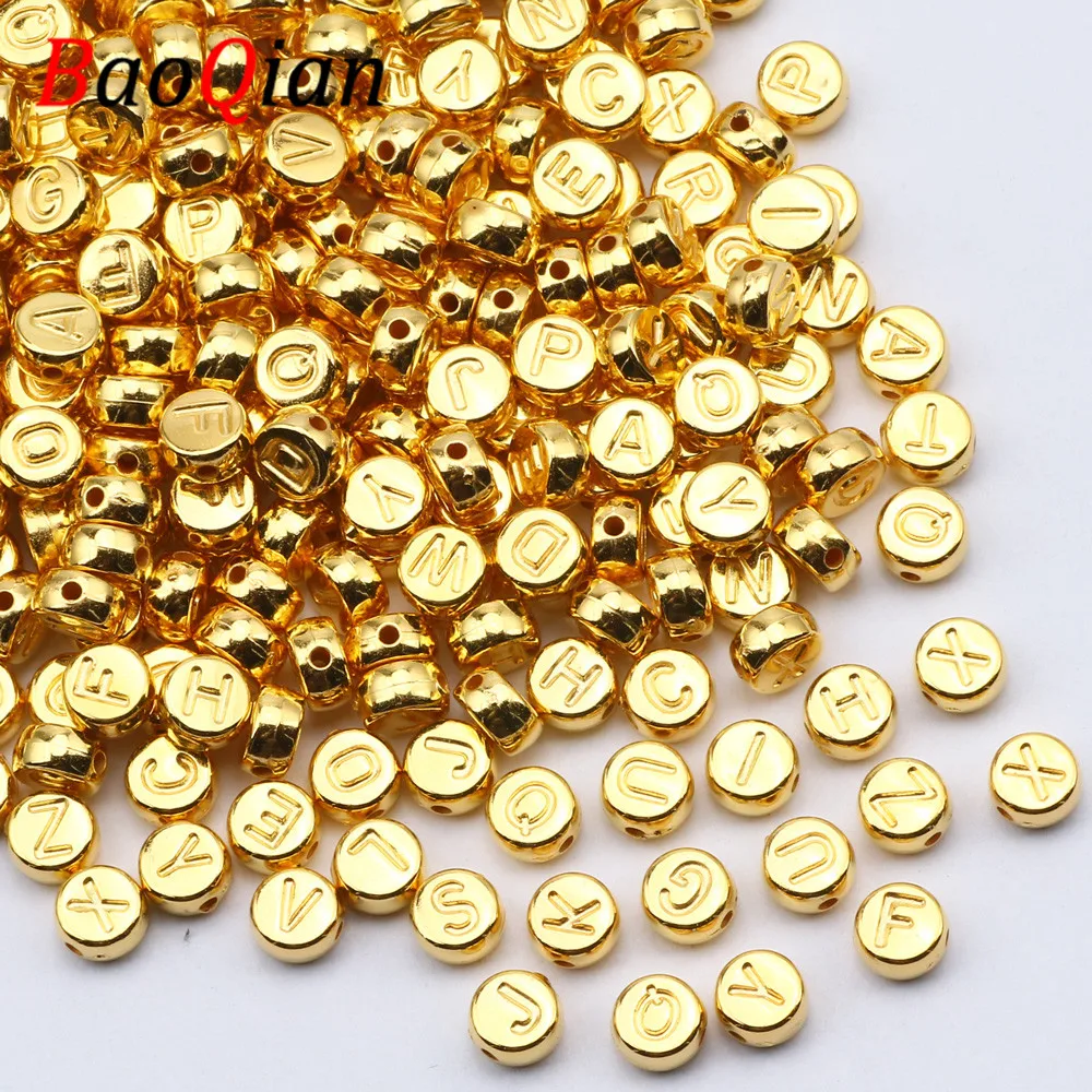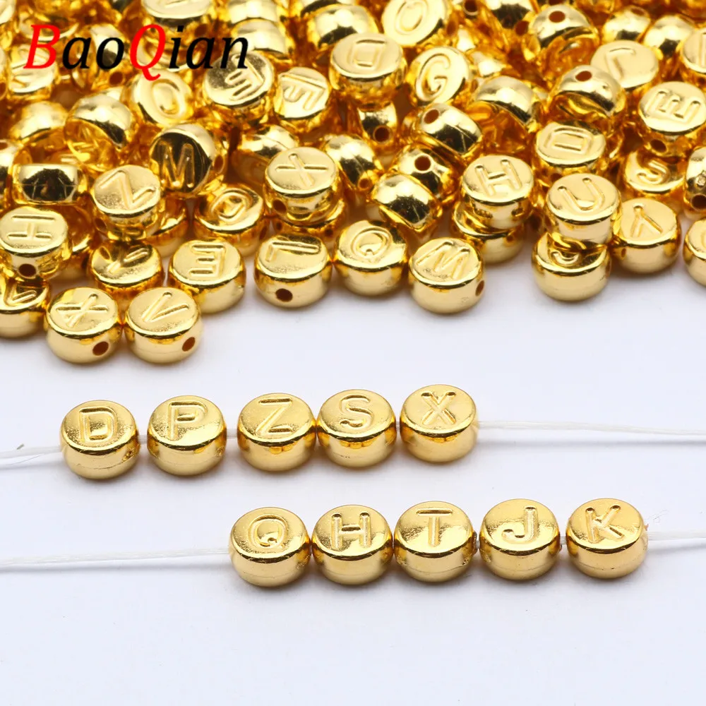 Плоские акриловые бусины с буквами золотого алфавита для изготовления ювелирных изделий сделай сам, изящные браслеты, ожерелья, аксессуары