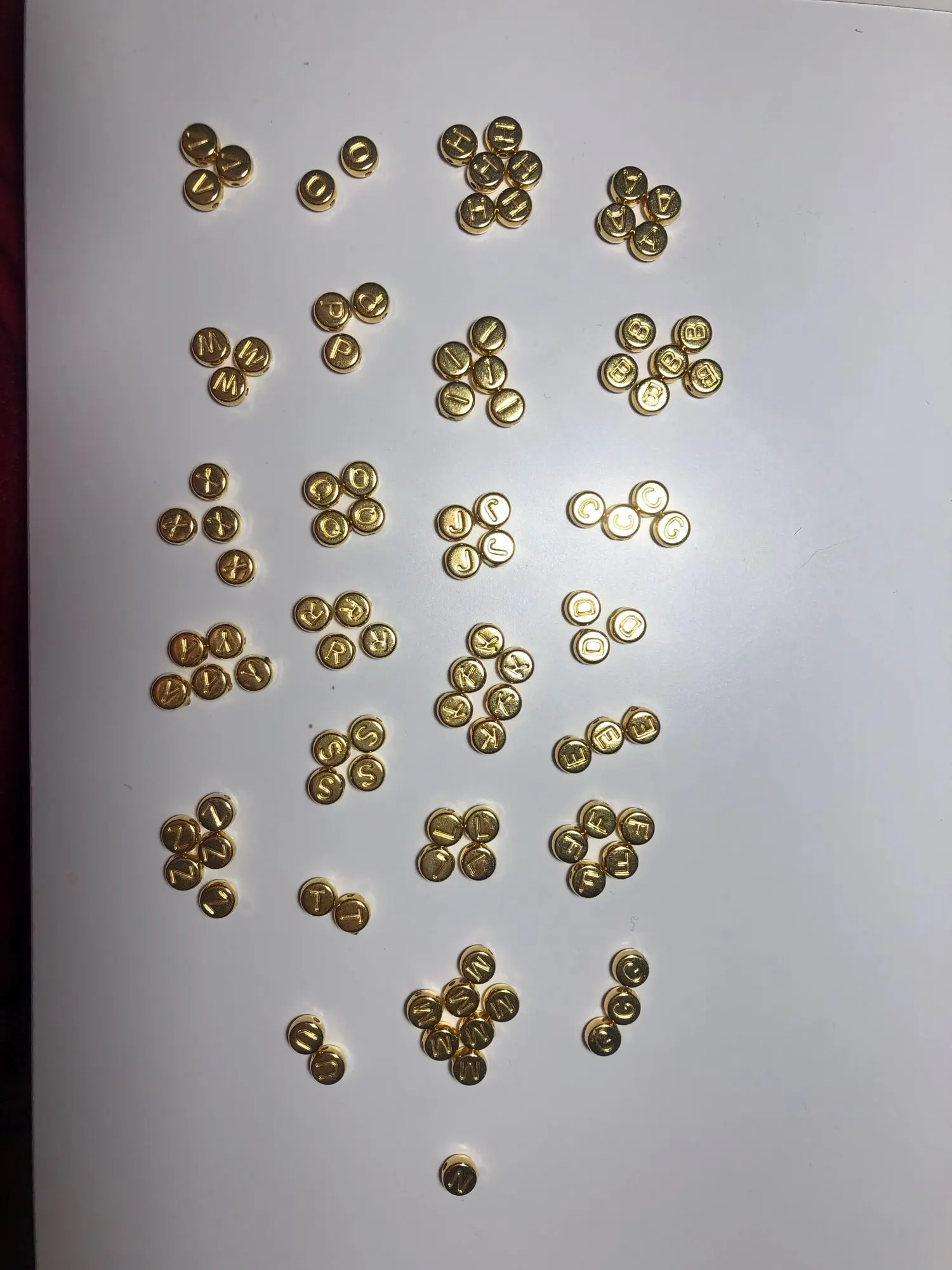 Бусины очень красивые, доставка была быстрой. Все буквы есть в одном пакетике (раскрыла только один пакет), но N всего одна штука. Холодненькие, сделаны аккуратно, по кол-ву вроде 98 шт. Цвет как у продавца, на фото может отличаться.