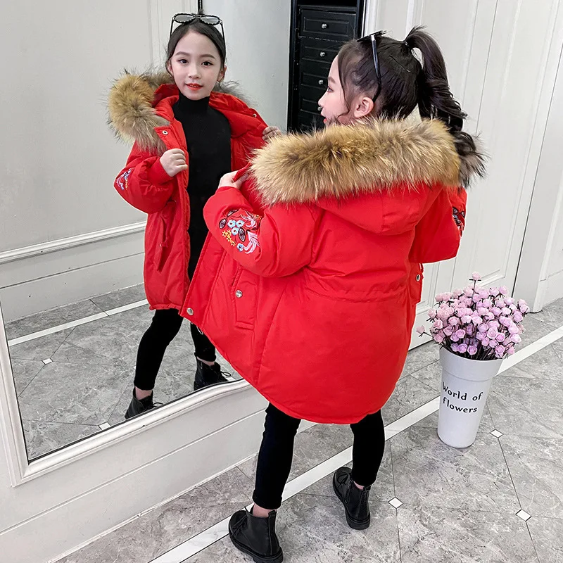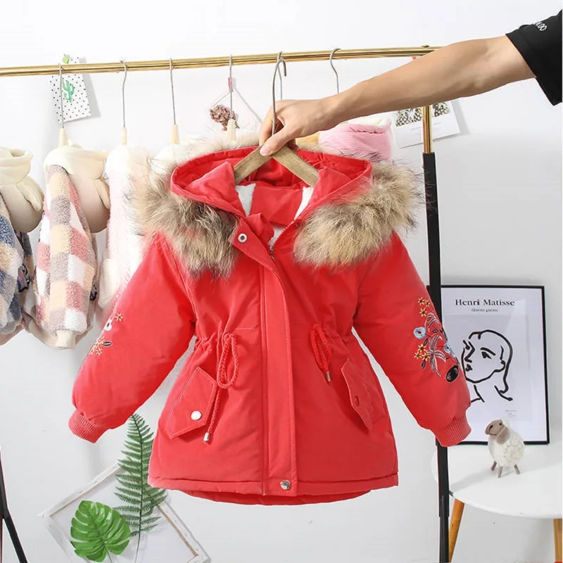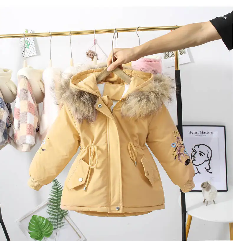 Зимняя одежда на хлопковой подкладке с длинными рукавами для девочек; Детская куртка; Утепленное плюшевое хлопковое пальто с вышивкой; Куртка