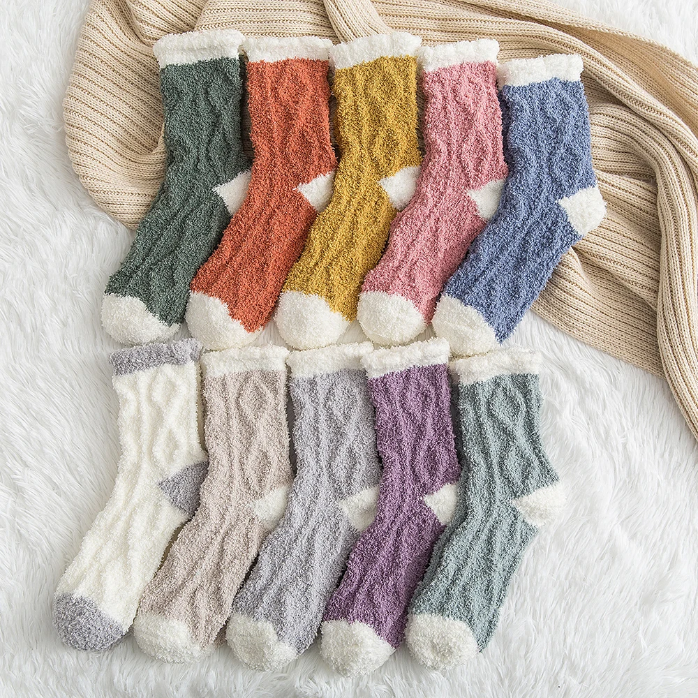 Теплые носки, женские Зимние коралловые флисовые двухцветные эласти...