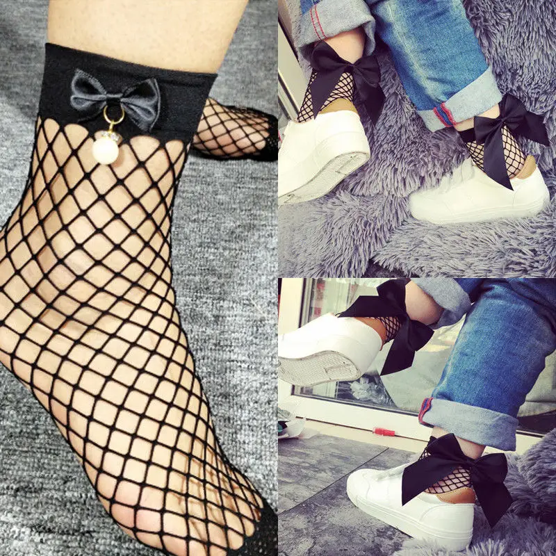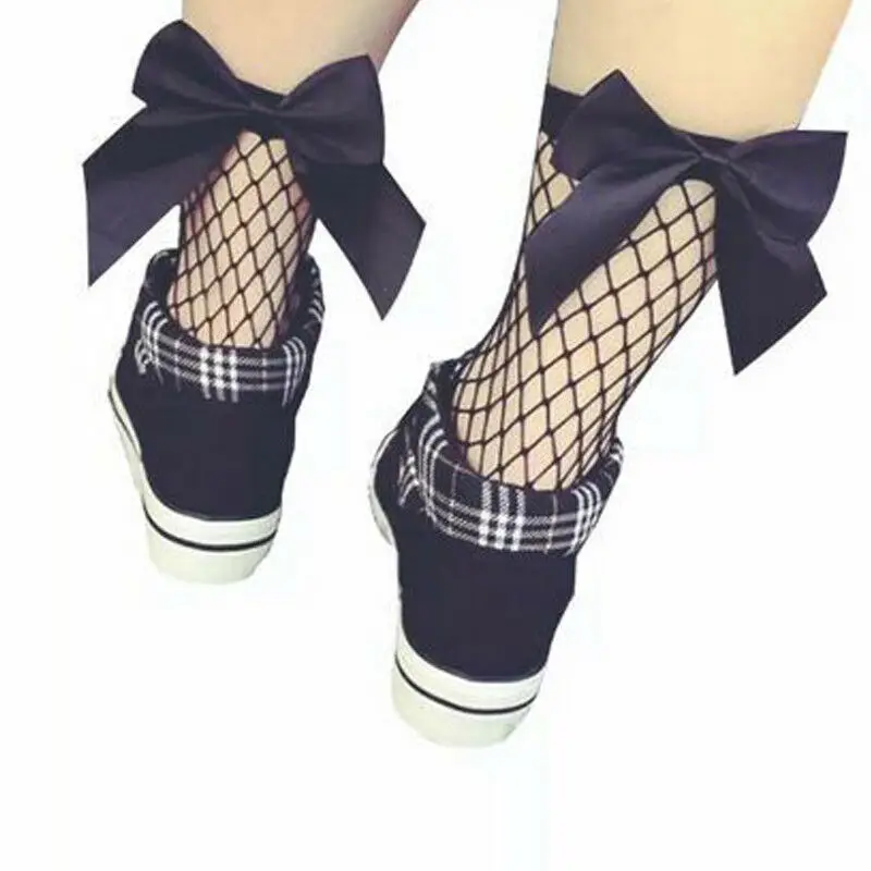 Носки женские, сетчатые, 1 пара, один размер, с бантом, кружевные, ...