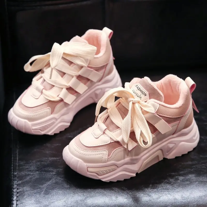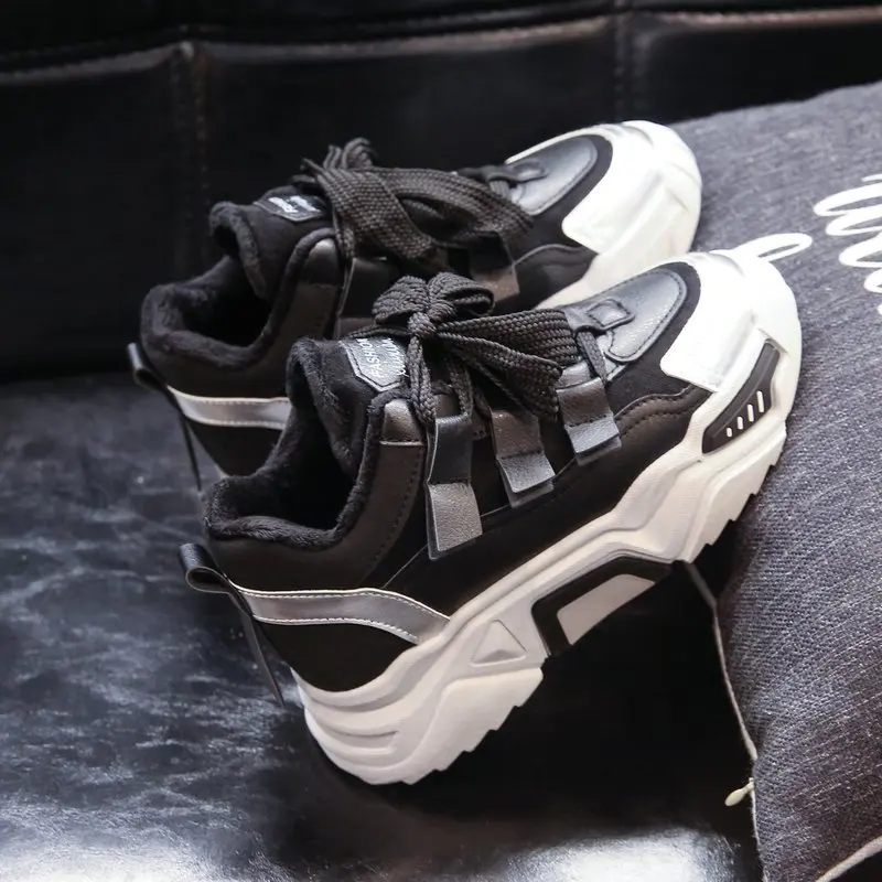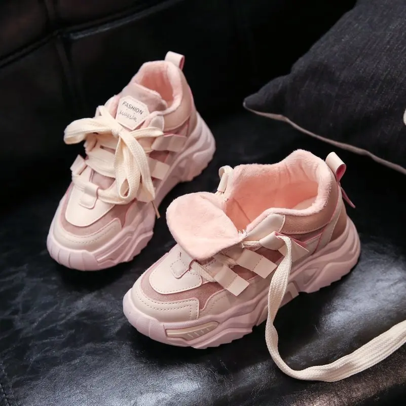 Женские кроссовки, Зимняя Теплая Бархатная женская повседневная обувь с вулканизированной подошвой, зимние женские кроссовки на платформе