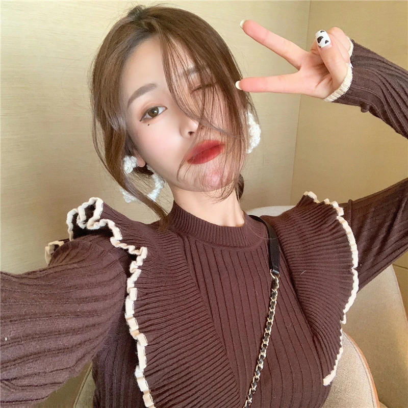 OCEANLOVE оборки Pull Femme Hiver винтажная тонкая однотонная осенне-зимняя одежда женские свитера корейские 2022 пуловеры Топы 18824