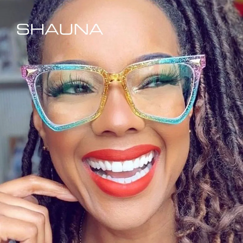Оправа для оптических очков SHAUNA, ретро-оправа кошачий глаз с заклепками и защитой от синего света