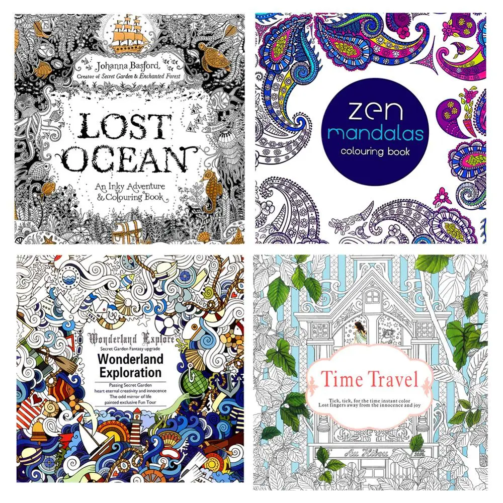Книга-раскраска для детей, живопись, английские книги, дзен мандалы...