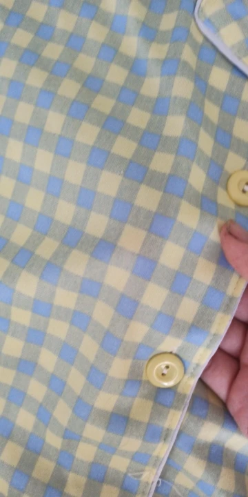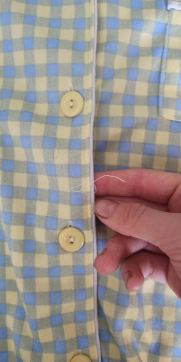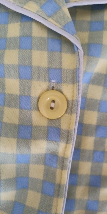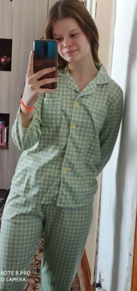 Пижама шла не очень долго,что меня очень удивило. Упаковано в удобный пакет,который легко можно открыть без ножниц. Немного не соответствует той пижаме,что я заказывала,так как цвет был более насыщен, но это даже хорошо. Пижама была сложена очень аккуратно, в подарок положили резиночку, так же не забыли про бирку,в которой написано как её стирать. Материал действительно очень хороший, как только надела почувствовала тепло). В некоторых местах торчали ниточки ,но их можно аккуратно отрезать. Пуговицы пришиты очень хорошо. Подошла отлично, осталось невероятно довольной. С продавцом не общалась.♥️