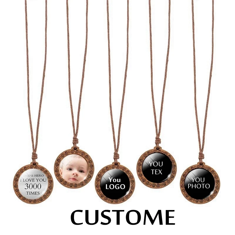 Деревянное ожерелье под заказ с фотографией ребенка дедушки родител...