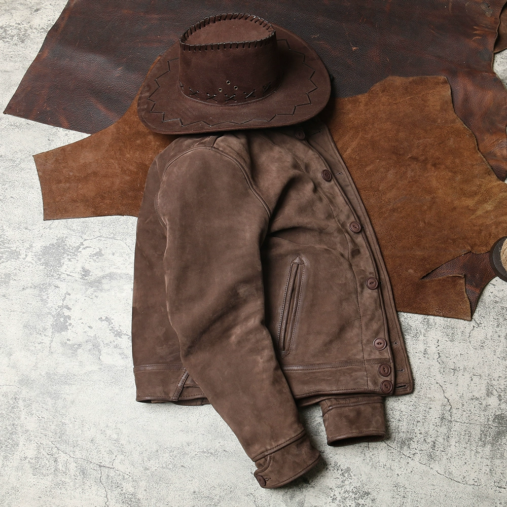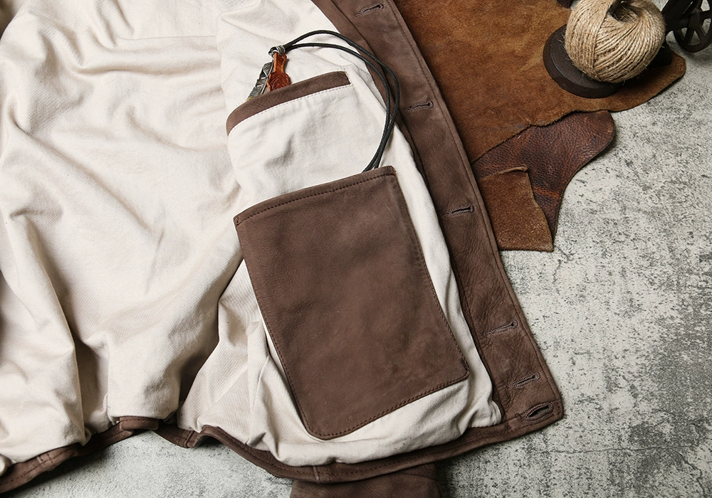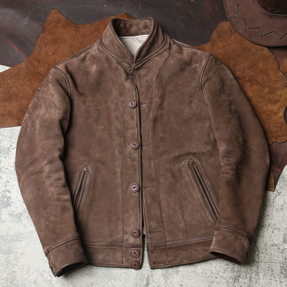 Куртка из козьей кожи с рукавом из натуральной воловьей кожи азиатс...