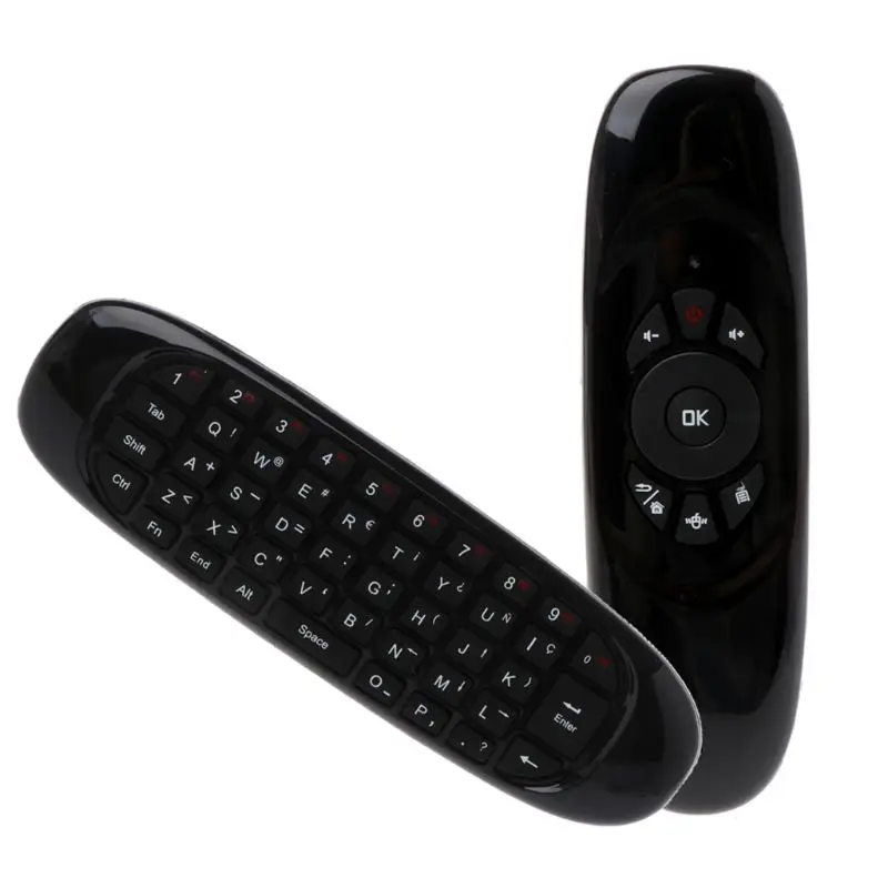 Это поддерживает беспроводную связь 2,4G, поэтому вам нужно подключить usb-адаптер air mouse, чтобы получить сигнал 10m. Можно использовать все клавиши клавиатуры.