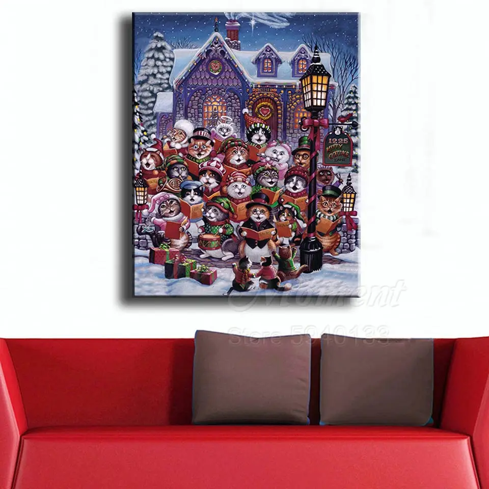 Алмазная картина с котом из мультфильма на Рождество, хобби и рукоделие