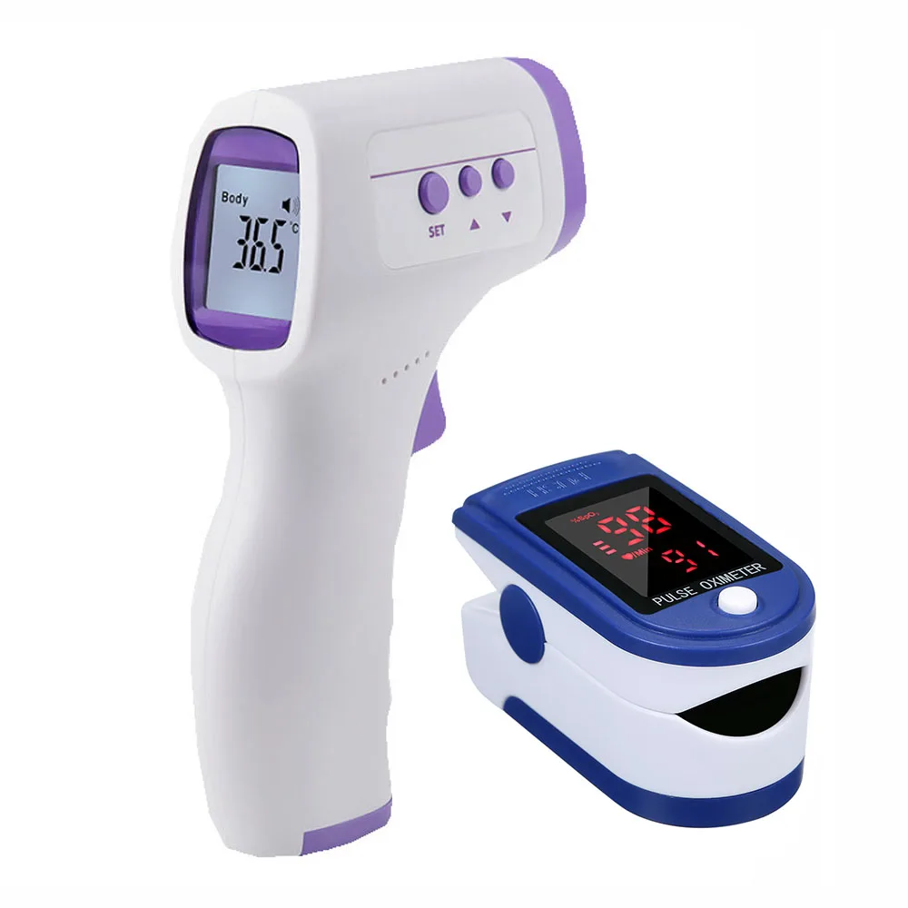 Комплект инфракрасного термометра и пульсоксиметра на пальцах.[Инфракрасный термометр]Особенности:Инфракрасное измерение: Быстрое измерение за 1 с. Точный и надежный с улучшенным алгоритмом и оптимизированной калибровкой температуры.Функция памяти: 50 групп воспоминаний о данных измерений, удобно отображать.3 цвета ЖК-дисплея: трехцветный индикатор зеленого, желтого и красного цвета. Большой экран с подсветкой легко читаемый.Энергосбережение: при отсутствии работы он автоматически выключится через 18 секунд.Универсальность: единицы измерения по Цельсию и Фаренгейту опционально, переключаемый режим измерения температуры кожи и объекта.Карманный дизайн: портативное устройство для переноски, Бесконтактное и безопасное в использовании.Характеристики:Материал: АБСПамять: 50 группЕдиница: °C/ °FРасстояние измерения: 1-3 смАвтоматическое отключение: ≤ 18 сДиапазон измерения: 34,0-42,9 °C/93,2 °F-109,2 °FТочность: ± 0,2 ℃ (35,0 ℃-42,0 ℃); ± 0,3 ℃ (34,0 ℃-34,9 ℃, 42,1 ℃-42,9 ℃)Температура сигнала тревоги: 38,1 °CТрехцветный дисплей:Зеленый: 34,0 ℃≤T≤ 37,3 ℃ (93,2 ℉≤T≤ 99,1 ℉)Желтый: 37,4 ℃≤T≤ 38,0 ℃ (99,3 ℉≤T≤ 100,4 ℉)Красный: 38,1 ℃≤T≤ 42,9 ℃ (100,6 ℉≤T≤ 109,2 ℉)Источник питания: 2 * батарейки типа "ААА" (не входит в комплект)Размер изделия: 136*83*39 мм/5,35*3,26 * дюймаВес изделия: 90 г/3,17 унцииПосылка: 158*98*50 мм/6,22*3,86 * 1.97inВес посылка: 110 г/3,88 унции[Пульсоксиметр на пальцах]Особенности:Надежно и быстро: пульсоксиметр на кончике пальца определяет насыщенность кислородом в течение 8 секунд.Высокопроизводительные датчики: мощные датчики ускорения для достижения более точных результатов измерений.Чип с низким энергопотреблением: он использует чип с низким энергопотреблением, который может увеличить время использования и обеспечить производительность.Большой светодиодный дисплей с высоким разрешением: A-level подсветка, большой шрифт, высокое разрешение, подходит для пожилых людей.Не скользит и устойчив к царапинам: благодаря УФ-технологии, по сравнению с обычными материалами, обладает отличной технологией.Универсальность: для пилотов, любителей спорта, лыжников, велосипедистов или альпинистов насыщение кислородом можно легко и быстро считывать.Характеристики:Материал: АБСЦвет: синийРежим отображения: Цветной СВЕТОДИОДНЫЙ дисплейНасыщенность кислородом: 36%-99% (± 2%)Источник питания: 2 * батарейки типа "ААА" (не входит в комплект)Рабочий ток: 20 ма-120 мАРазмер изделия: 5,8*3,0*3,0 см/2,28*1,18 * дюймаВес изделия: 50 г/1,76 унции (с батареями)Посылка: 10*7*6 см/3,94*2,76 * 2.36inВес посылка: 80 г/2,82 унцииПосылка тация:1 * оксиметр1 * термометр2 * Руководство пользователя