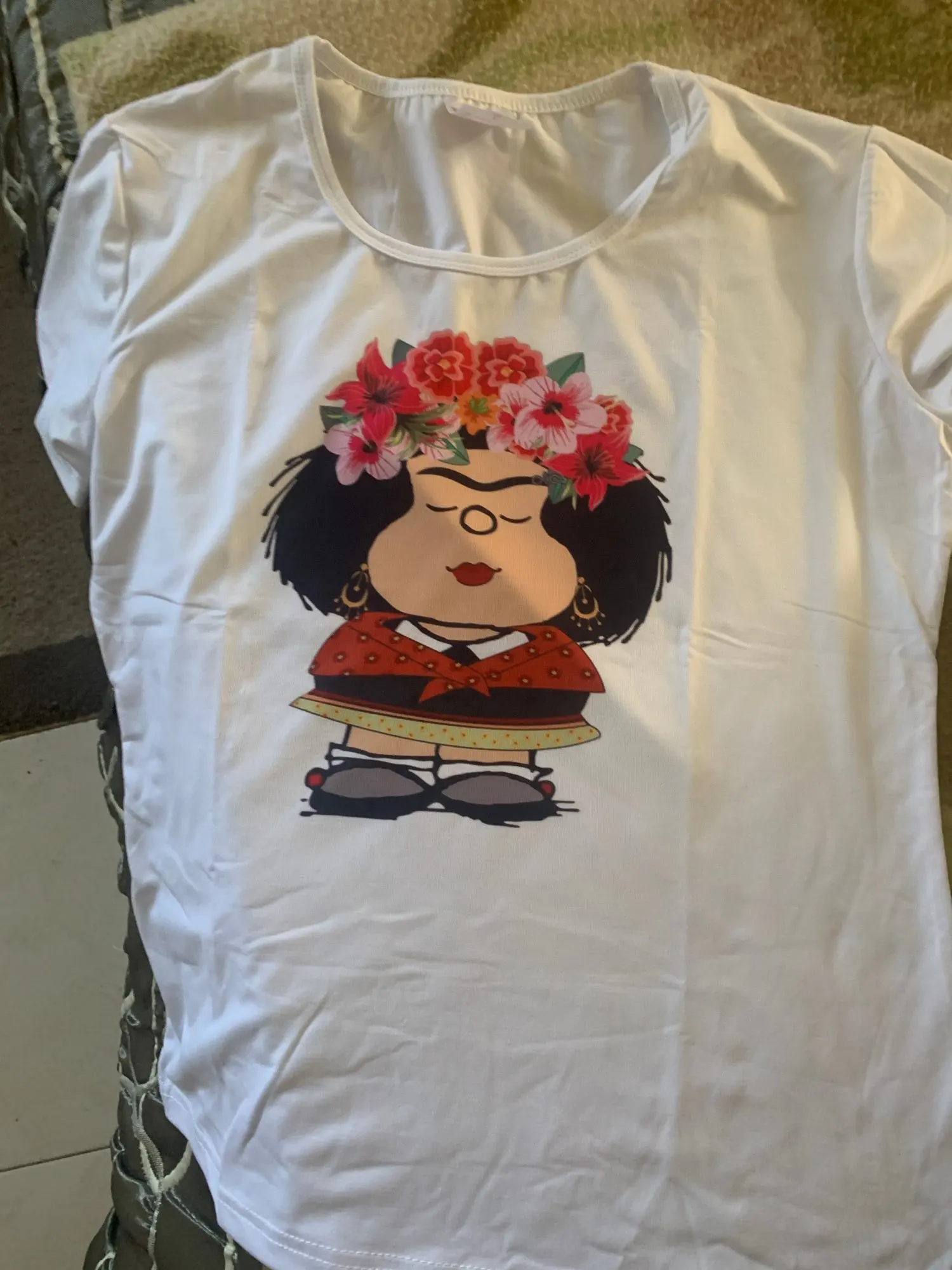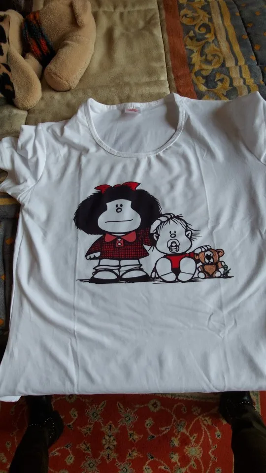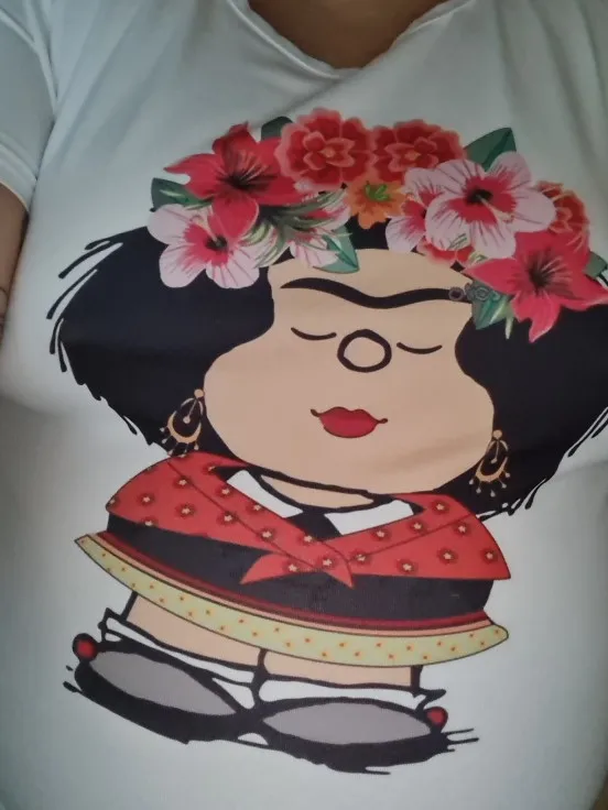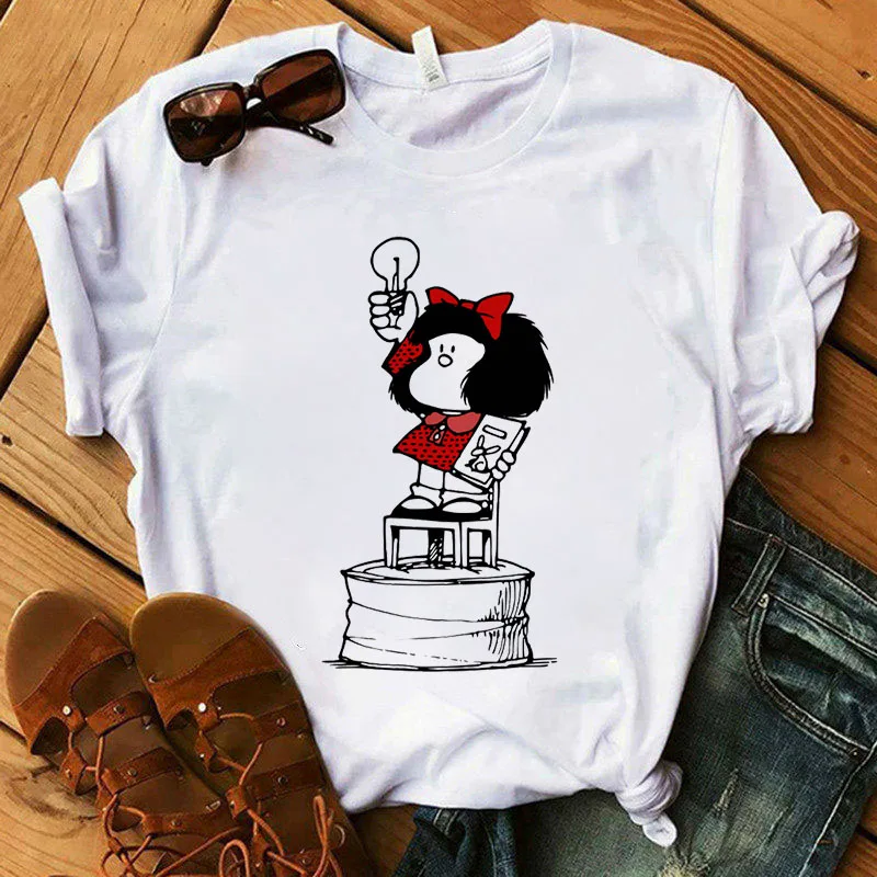 Футболка Mafalda женская с круглым вырезом, повседневный мультяшный Топ в стиле Харадзюку с коротким рукавом, уличная одежда, белая, на лето