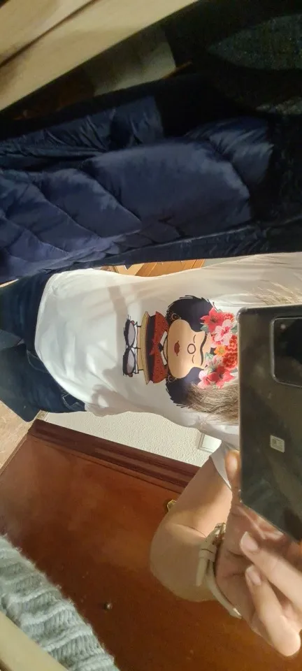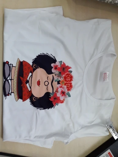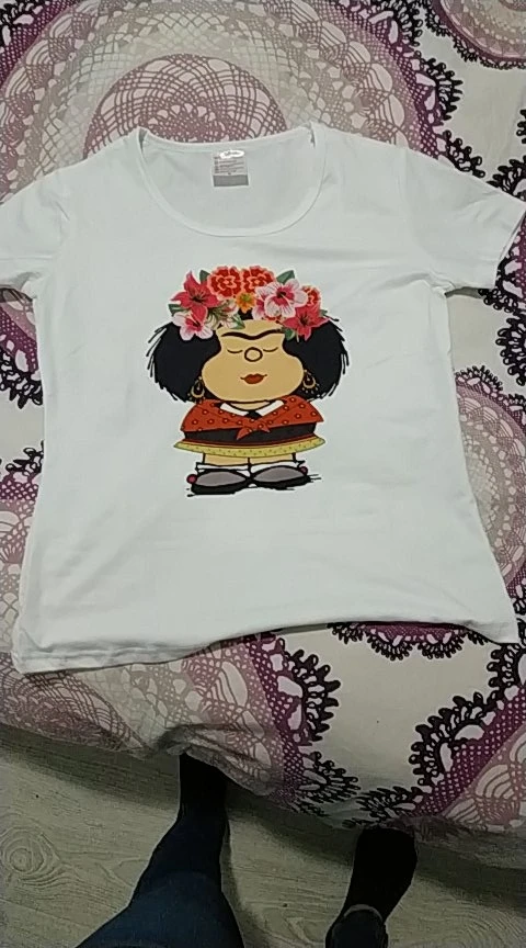 Футболка прибыла раньше, чем ожидалось, и дизайн такой же, как на картинке, что не убедило меня в том, что это ткань, это как licra, так что он очень подходит к телу, и мне не нравится одежда такая плотная (но это моя вина, что я не прочла состав материала хорошо. Посмотрите, когда дело доходит до стирки. Нормальный размер