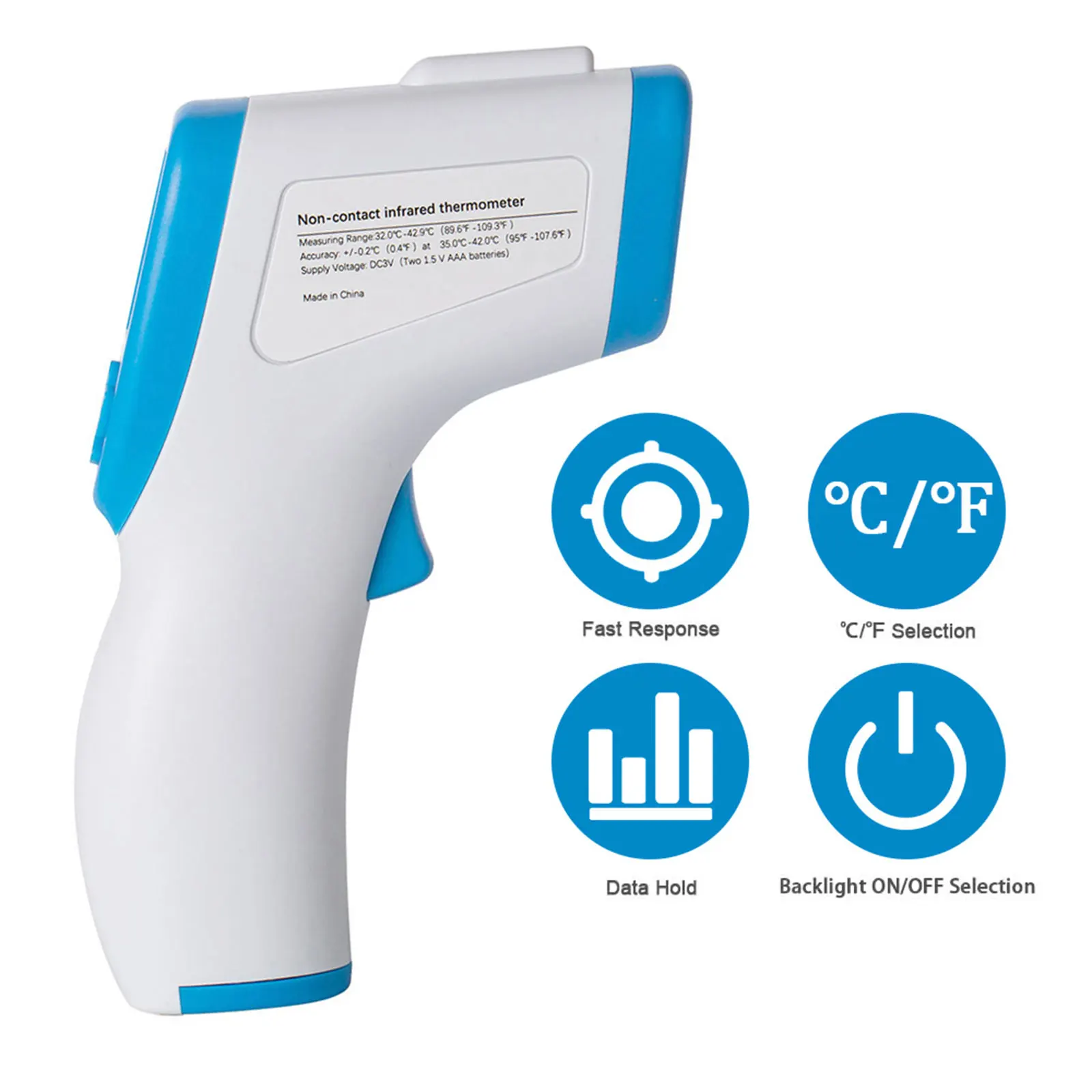 Портативный оксиметр для пальцев + Бесконтактный инфракрасный термометр------ Портативный оксиметр для пальцевОсобенности:Управление одной кнопкой, технология оптического обнаружения, быстрое измерение 10 секунд.Четкий OLED-дисплей, 4 направления для удобного чтения.Четко отображает кислород в крови и частоту сердечных сокращений, высокая точность.Автоматическое выключение за 8 секунд, энергосберегающее и экологически чистое.Цифры, отображаемые на экране, будут мигать при достижении значения будильника.Мини-оксиметр со шнурком, портативный для дома или путешествий.Характеристики:Цвет: синий и белый/черный (по желанию)Материал: АБСТип дисплея: OLED-дисплейДиапазон измерения SpO2: 70%-90%Точность SpO2: ± 2% на сцене 80%-99%, ± 3% на сцене 70%-79%Разрешение SpO2: ± 1%Диапазон измерения PR: 30-240 ударов в минутуТочность PR: ± 1BPMФункция будильника: мигание чисел (SpO2>100, SpO2<90) (PR>130, PR<60)Батарея: 2*1,5 в AAA батареи (не входят в комплект)Рабочий ток: 2,5 мАУсловия эксплуатации: 5 ℃-40 ℃, 15%-80% RH, 70 кПа-кПаРазмер изделия: 55*30*32 мм/2,2*1,3 * дюймаВес изделия: 26 г/0,9 унцииПосылка: 8*6,7*4,7 см/3,1*2,6 * 1.9inВес посылка: 43 г/1,5 унцииПосылка тация:1 Пульсоксиметр для пальцев1 шнурок1 * Руководство пользователя (на английском языке)------ Бесконтактный инфракрасный термометрОсобенности:Цифровой ЖК-дисплей с подсветкой, легкий и портативный для использования.Встроенная лазерная указка, точное Бесконтактное инфракрасное измерение.2 единицы измерения температуры: по Фаренгейту или Цельсию, нажмите и удерживайте «режим» более 5s.Удобный выбор режимов измерения для различных нужд.Измерение температуры тела: Наведите на лоб с расстояния 1-5 см.Разный цвет подсветки для разного диапазона температур в режиме работы.Измерение температуры объекта: измерение температуры поверхности объекта, температуры воды в детской ванне, температуры молока и т. д.Диапазон автоматического выбора и разрешение дисплея 0,1 °C/0,1 °F.Функция автоматического удержания данных и автоматического отключения питания.Выбор для зуммера; Установите значение будильника (значение будильника по умолчанию 38 °C/100,4 °F).Запоминание последних 32 групп данных измерений.Описание функций:F1: когда температура тела превышает температуру сигнала тревоги (значение по умолчанию 38 °C), будет отображаться красная подсветка и сигнал тревоги;F2: калибровка (по умолчанию 0), вы можете установить, когда есть отклонение температуры;F3: выключатель будильника (ВКЛ-ВЫКЛ), при включении будильника на экране появится значок громкоговорителя;F4: выбор режимов (по умолчанию), на экране будет отображаться «температура тела» в режиме тела.Описание цвета подсветки (только режим корпуса):<32 °C: красная подсветка: появляется символ «LO»;32-37,3 °C: зеленая подсветка: температура тела нормальная;37.3-F1: желтая Подсветка: температура тела высокая, но не превышает температуру сигнала тревоги;> F1: красная подсветка: температура тела превышает F1 и сигналы тревоги.Характеристики:Цвет: синийМатериал: АБС-пластикРазрешение дисплея: 0,1 °C (0,1 °F)Измерение температуры тела: 32,0-43 °C / 90-109,4 °FИзмерение температуры окружающей среды: 0-60 °C / 32-140 °FТочность: (+/-) 0,2 °C (допускается погрешность 0,6 °C из-за инфракрасного теста и эффекта окружающей среды)Расстояние измерения: от 1 до 5 смВремя автоматического выключения: около 7 сИсточник питания: 2 батарейки AAA 1,5 В (не входят в комплект)Рабочая температура: 1