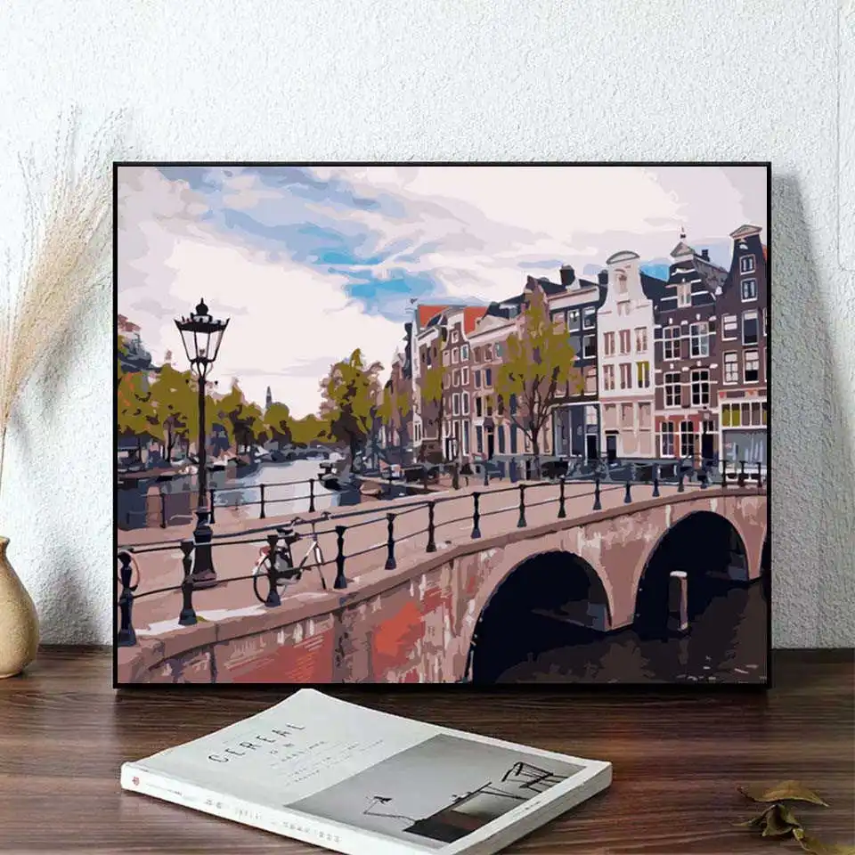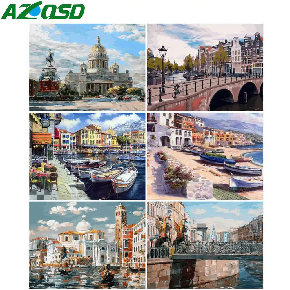 AZQSD Diy масляная краска ing по номерам городская краска по номерам холст краски ing наборы пейзаж Ручная Краска ed 50x40 см без рамки украшения