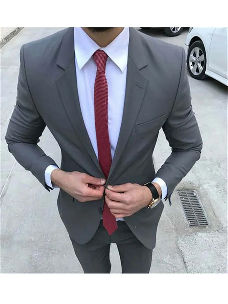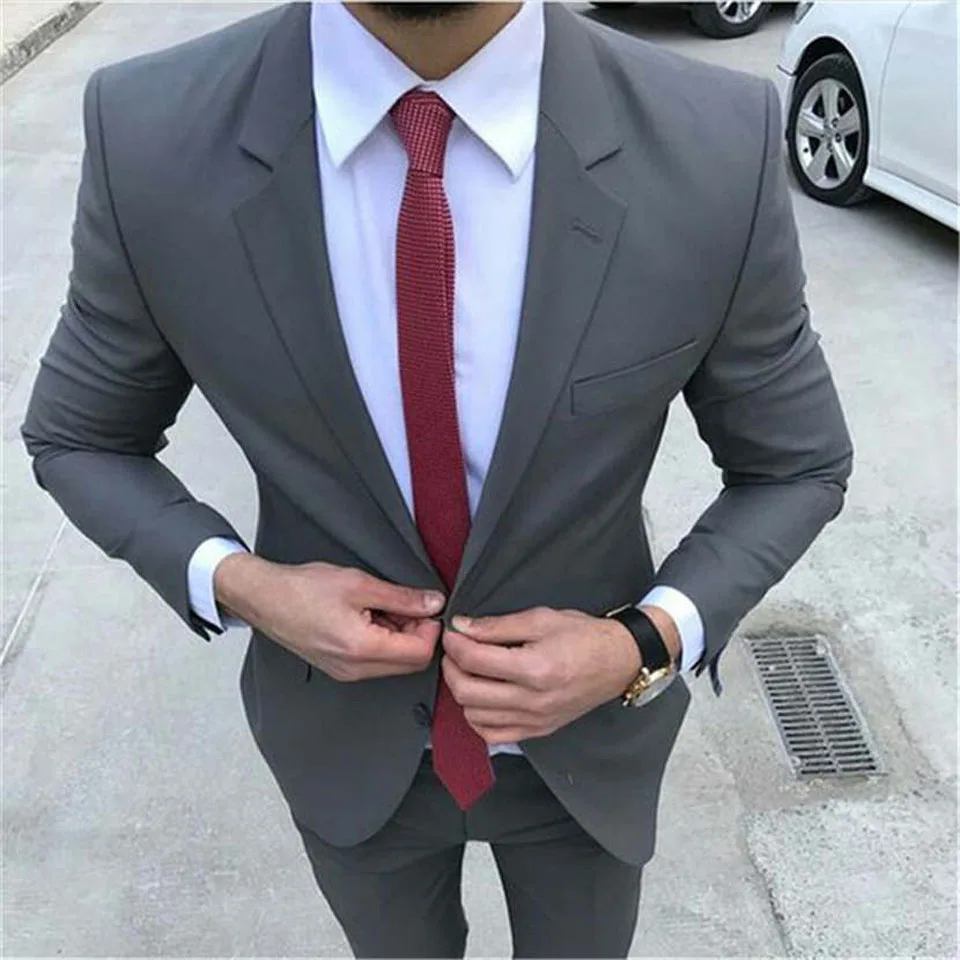 Новое поступление, серый облегающий мужской костюм, смокинги для мужчин, 2 предмета (пиджак + брюки + галстук), костюм лучшего мужчины, новейший стиль