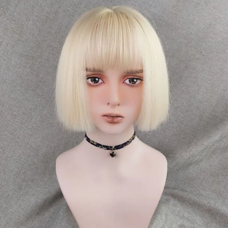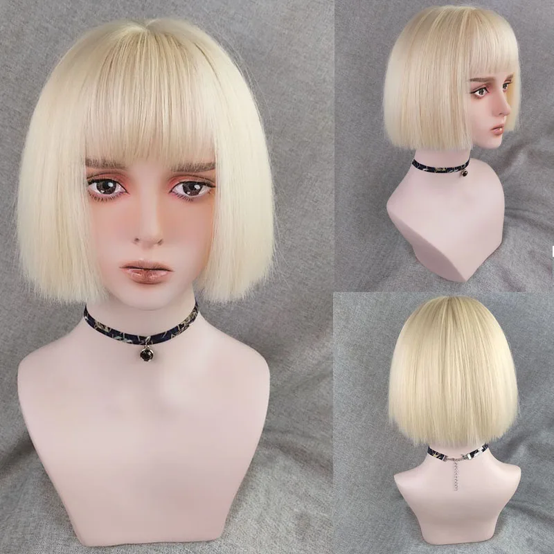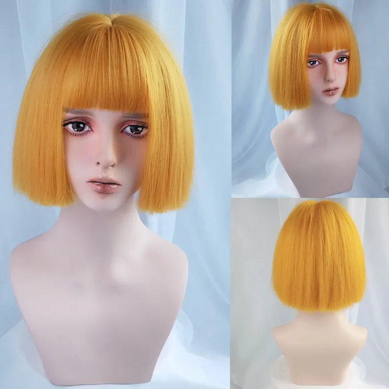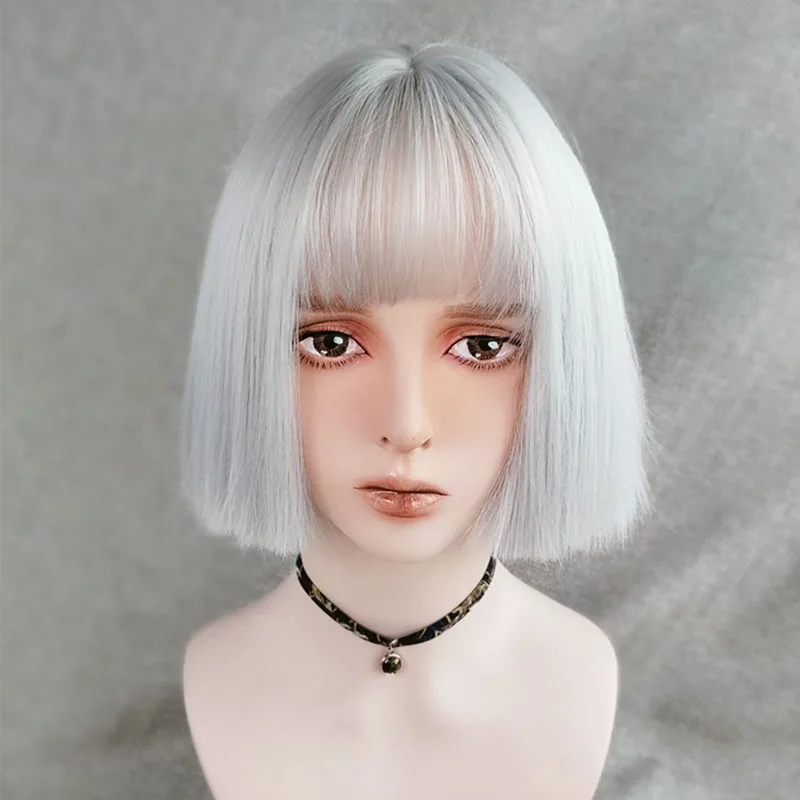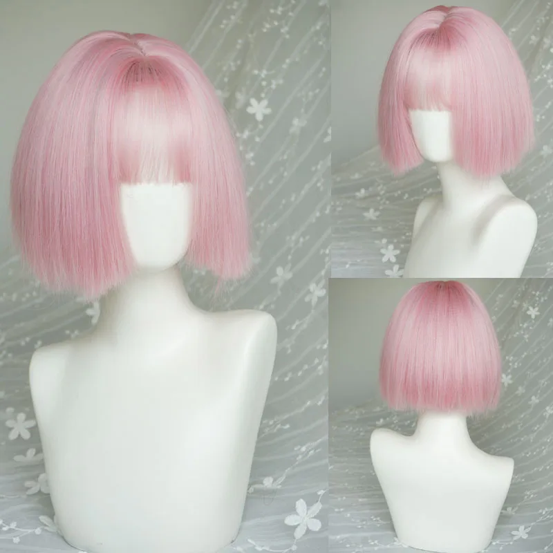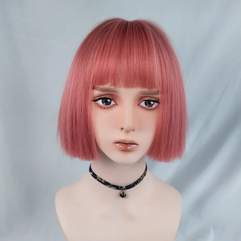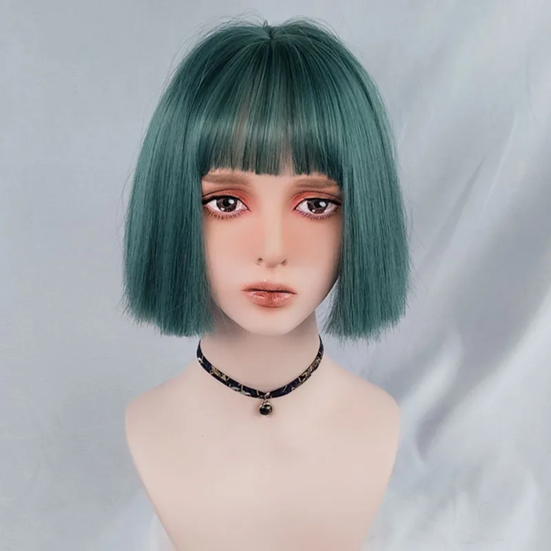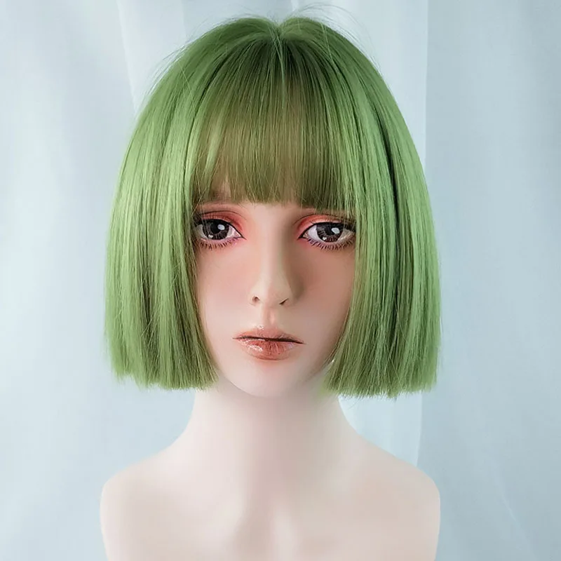 Парик AOSI женский короткий прямой из натуральных волос, модные искусственные волосы для косплея Лолиты, розового, светлого, зеленого цветов, с челкой для женщин