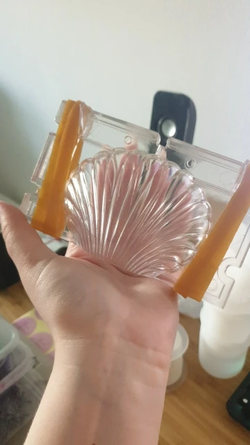 Получил в течение 9 дней! Люблю их, лучше разогревать формы в духовке или что-то еще, я нагреваю до +- 80 °C, так как я налеваю свой парафин при +- 80 °C. Дает удивительные результаты! Я не разогревал форму в первый раз с оранжевым на картинке, вы можете увидеть некоторые линии в нем, потому что парафин слишком быстро охлаждается в холодной форме.