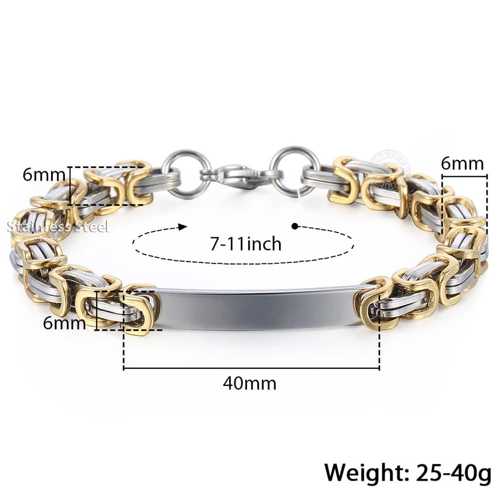 Женский мужской браслет из нержавеющей стали, на заказ, ID, 5610 мм, мужской Византийский браслет, черный, золотой, серебряный цвет, LKB566
