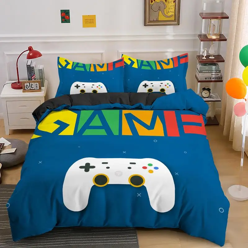 Набор пододеяльников для мальчиков, постельное белье с принтом, одеяло, игровые элементы