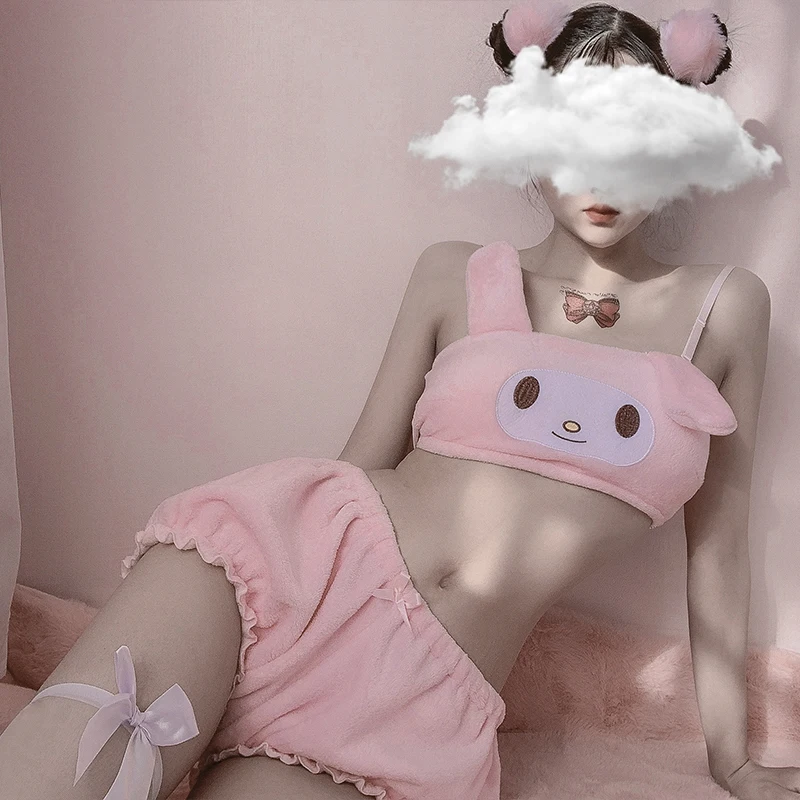 Нижнее белье для девочек, плюшевый мягкий милый бюстгальтер на бретельках, мультяшный Пижамный костюм на осень и зиму, удобное женское нижнее белье без косточек с вышивкой