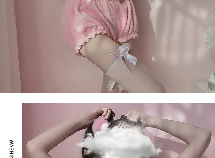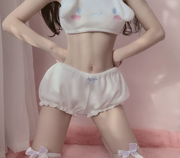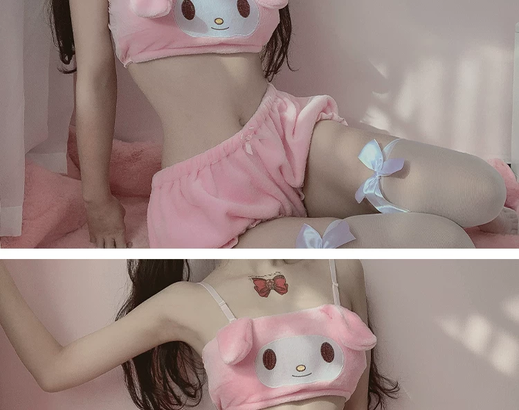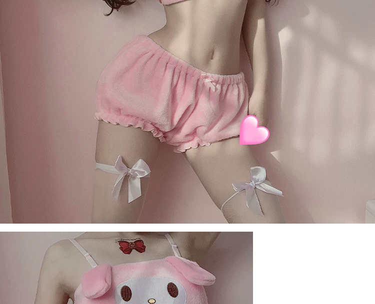 Розовый и белый кавайный бархатный топ и трусики, комплект для дево...