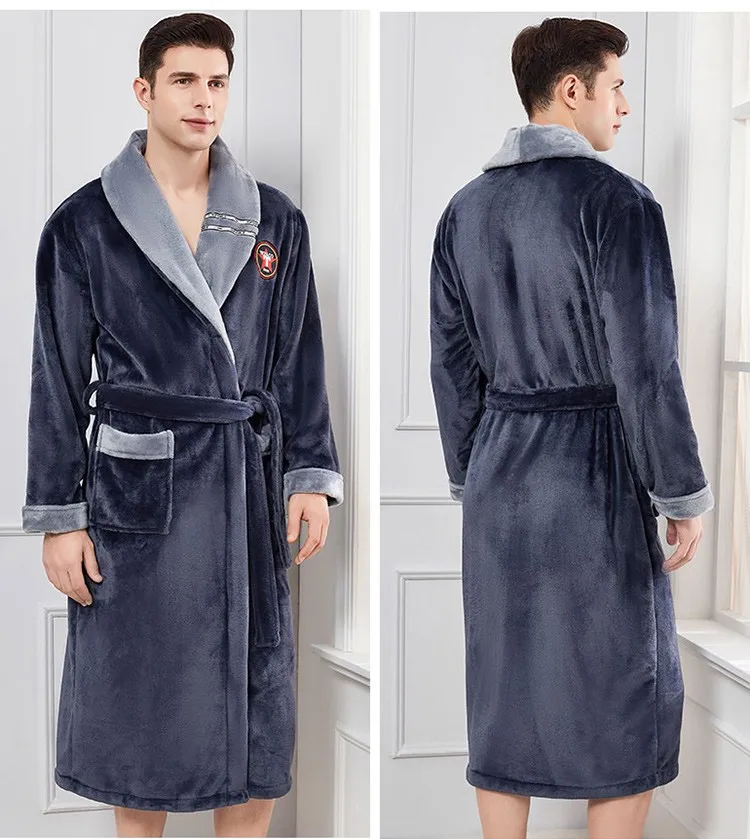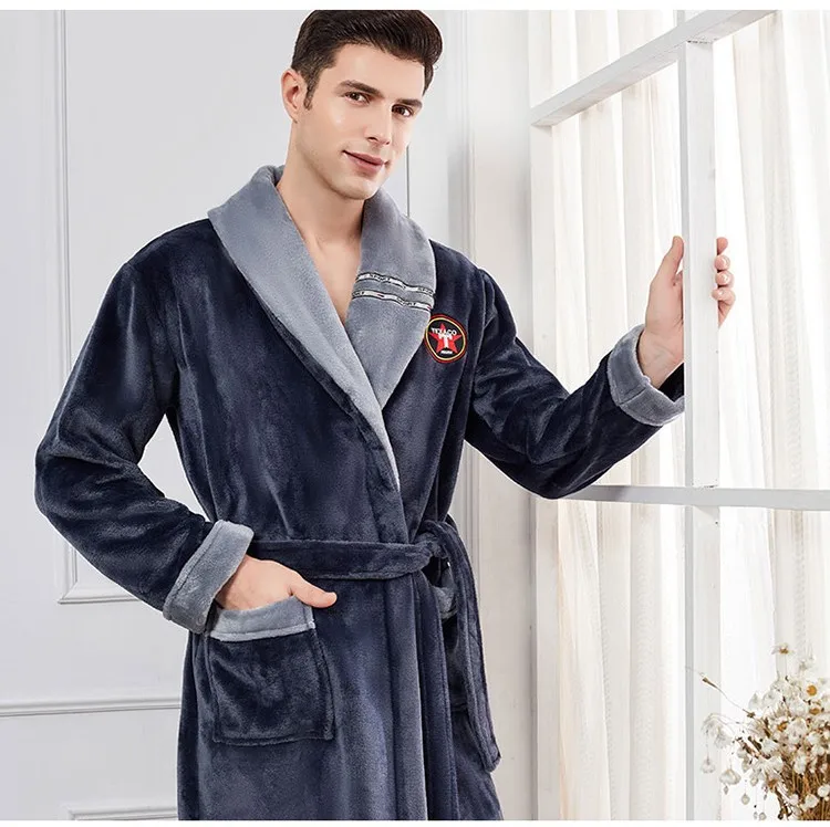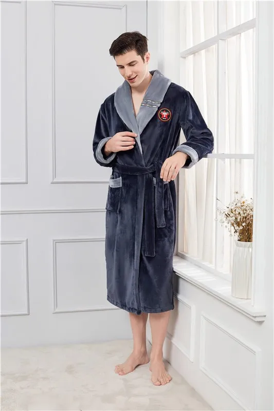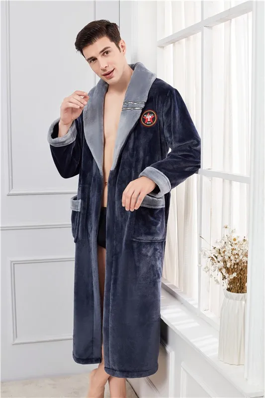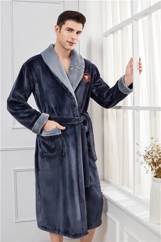 Фланелевый Халат, размера плюс, 3XL, 4XL, Мужская одежда для сна, мягкое кимоно, длинный халат, зимняя утепленная ночная рубашка, теплая домашняя одежда