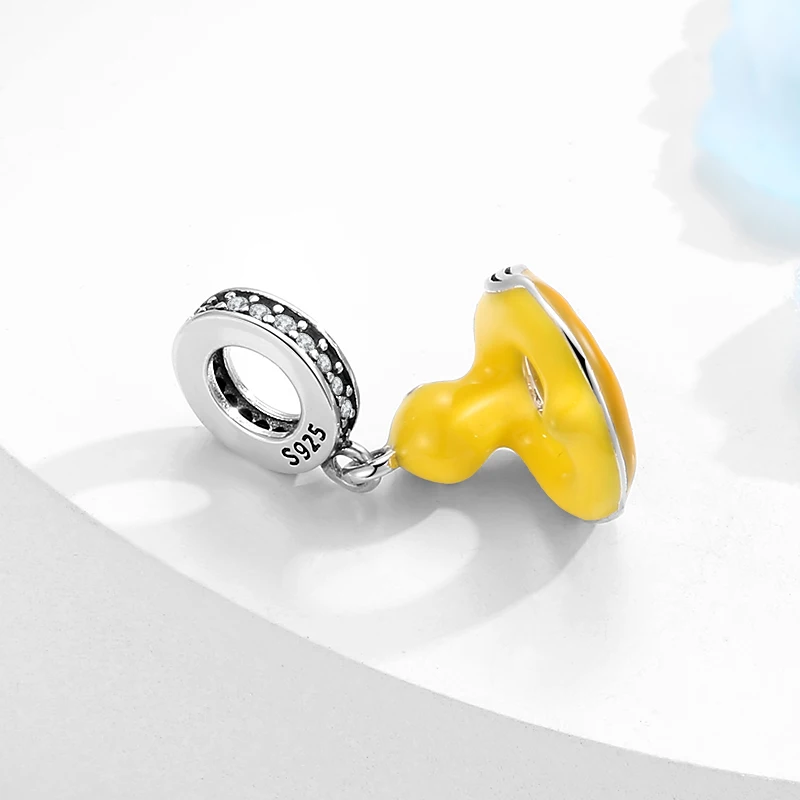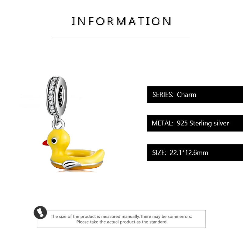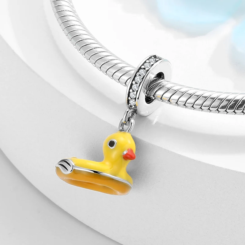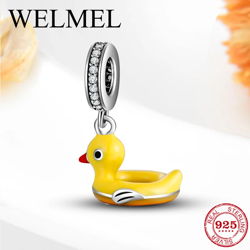 Шармы из стерлингового серебра 925 пробы, милая маленькая желтая утка, детское кольцо для плавания, кулон с цирконием, подходят для оригинального браслета сделай сам, эмалевое изготовление ювелирных изделий