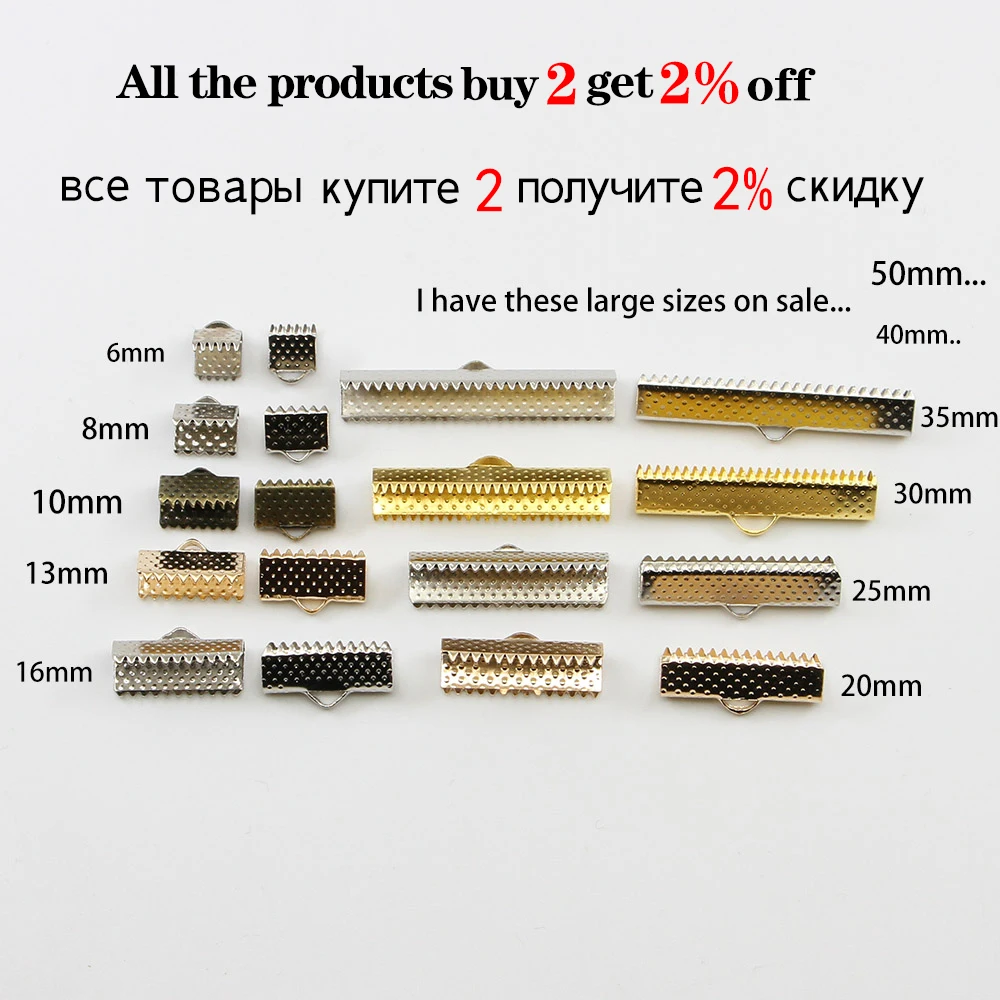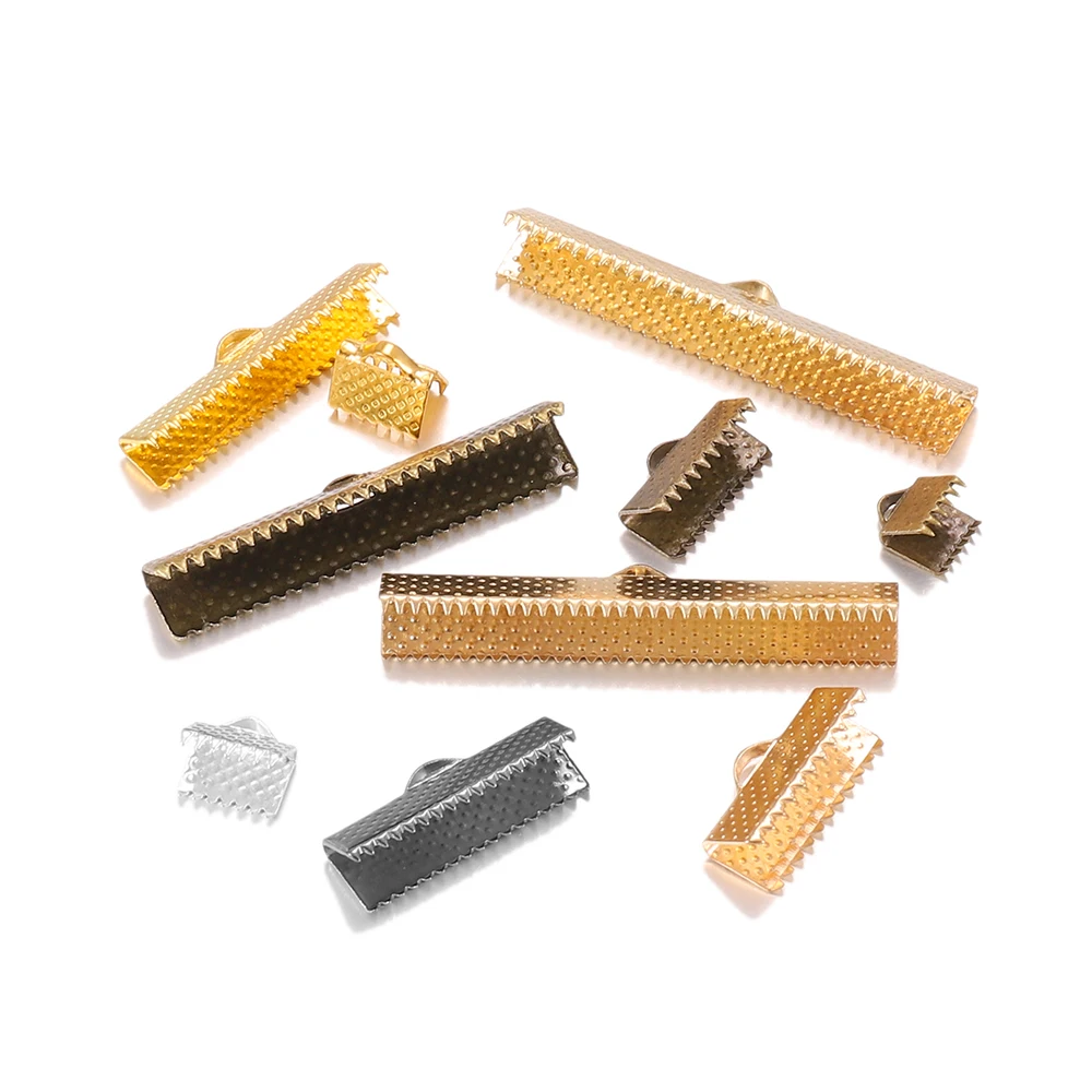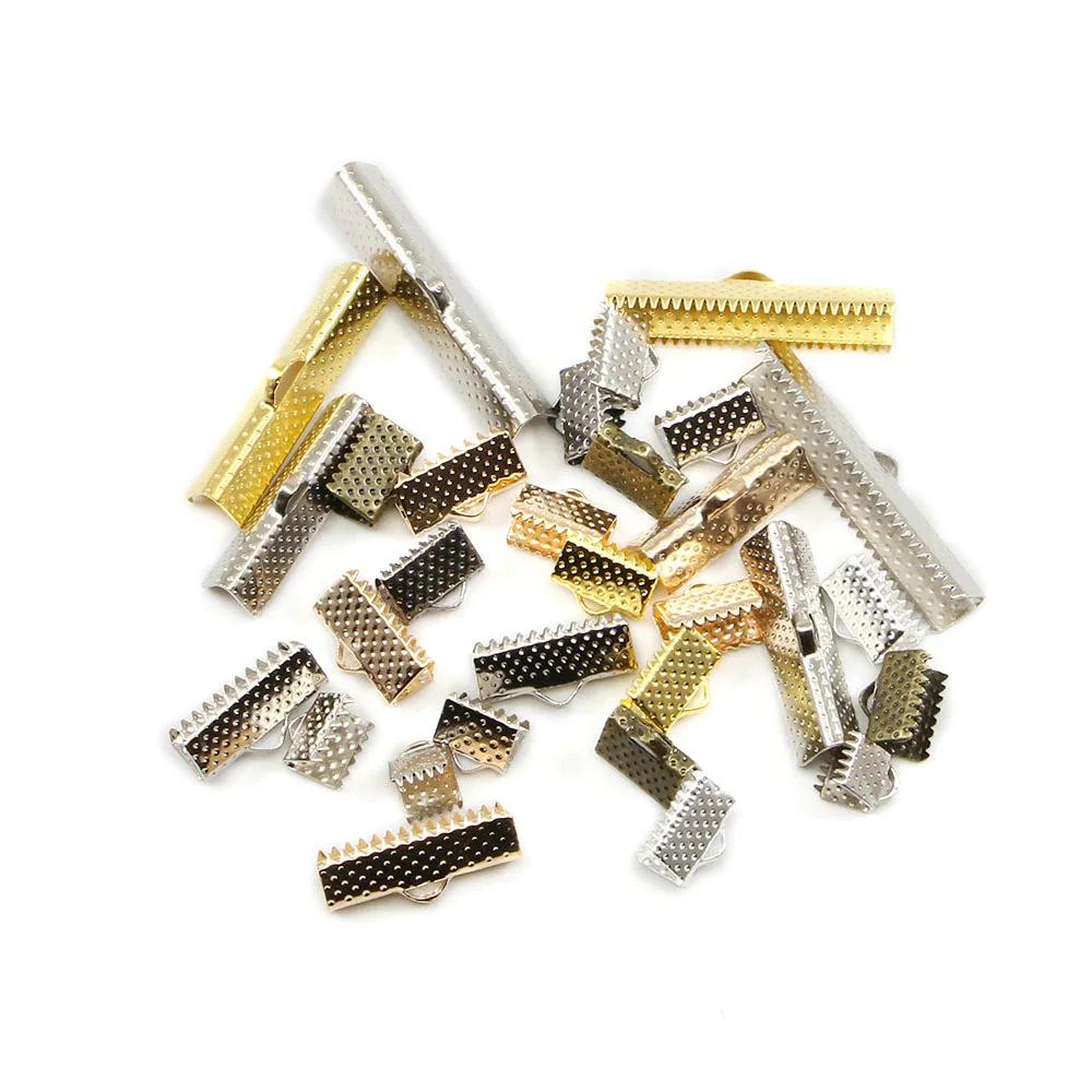 50 шт.лот, зажимы для шнура, концевые колпачки, Обжимные бусины, ленточная лента, кожаный зажим, раскладные соединители для DIY ювелирных изделий, фурнитура