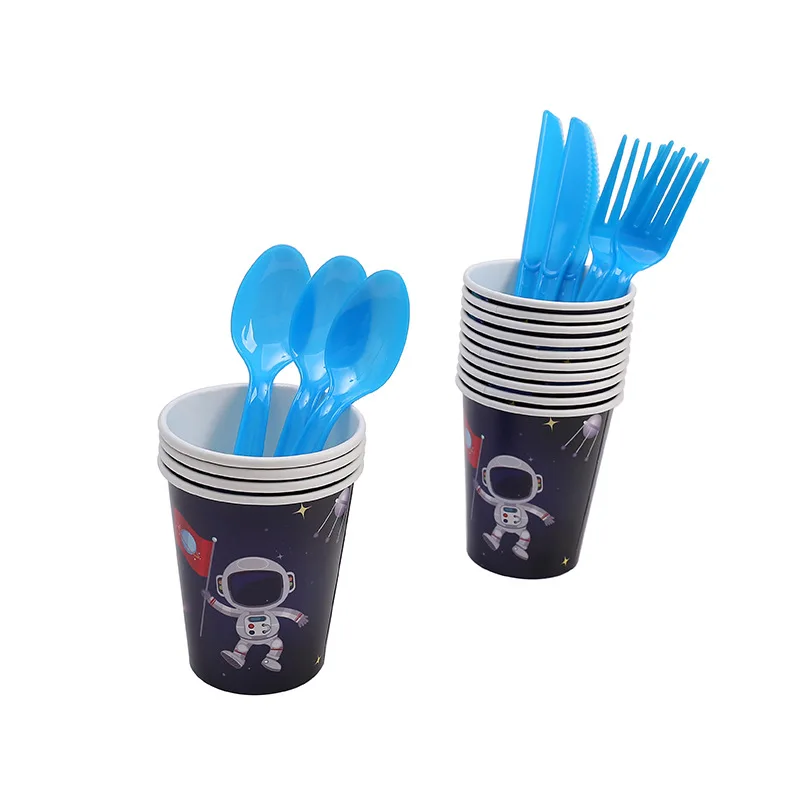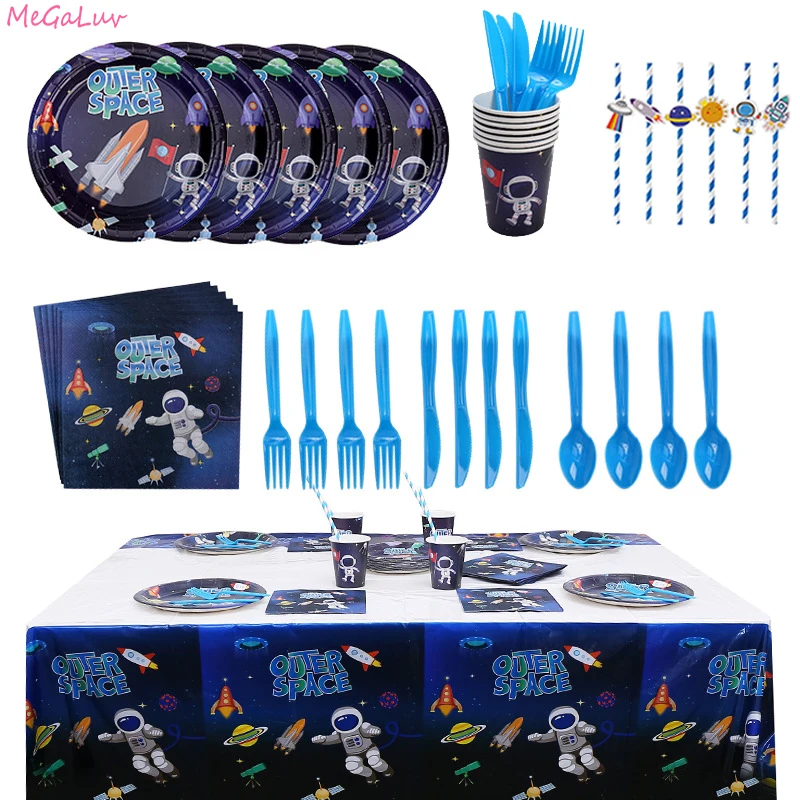 Космической тематике одноразовая посуда астронавт Бумага китацский, для дня рождения для маленьких мальчиков украшения Baby Shower вечерние поставки