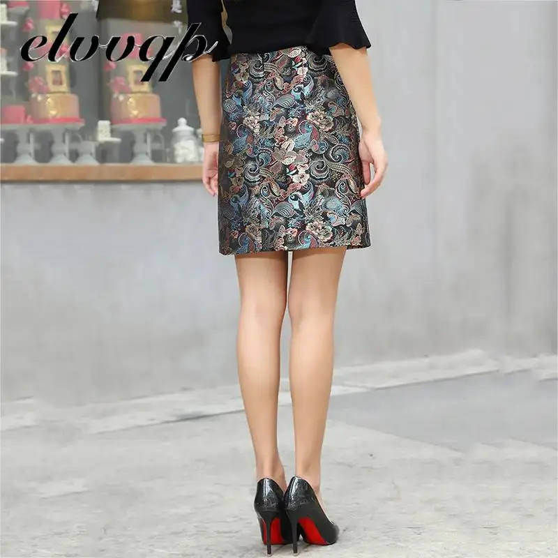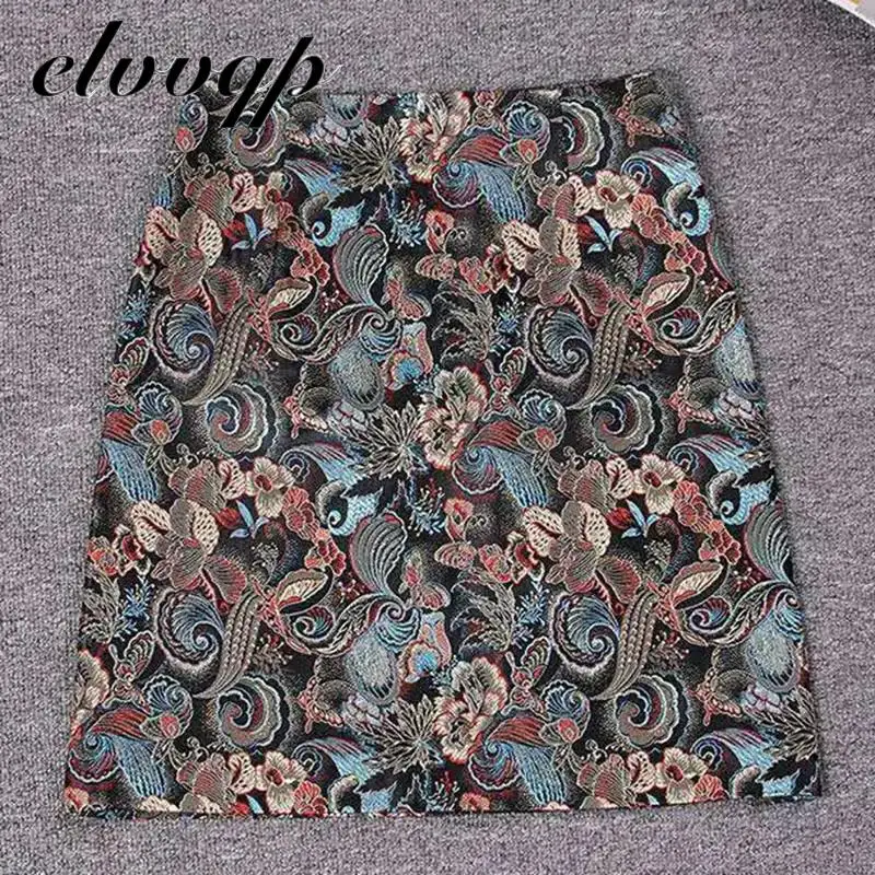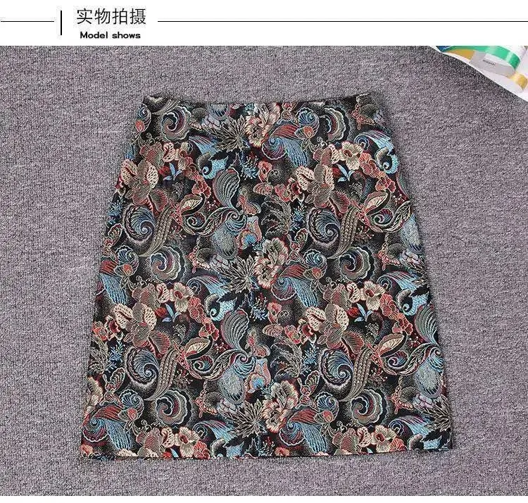 Винтажная юбка с вышитыми цветами, осенне-зимняя элегантная Офисная Рабочая Юбка, Повседневная мини-юбка на молнии, для вечеринок
